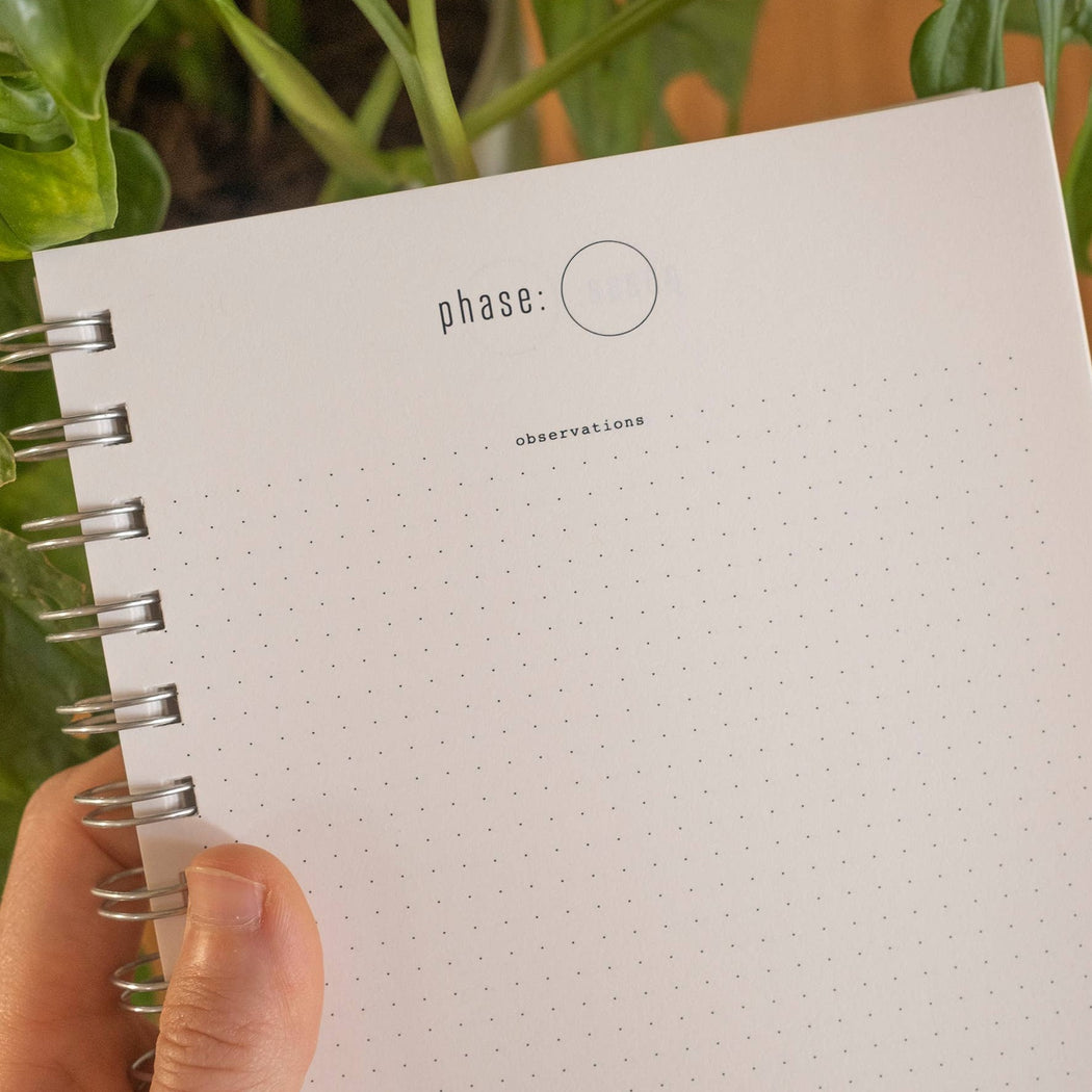 What’s inside: Instructions, a mini moon phase guide with common associations, moon phase journal pages (enough for an entire lunar year) a section including a page for each main moon phase for you to track patterns.