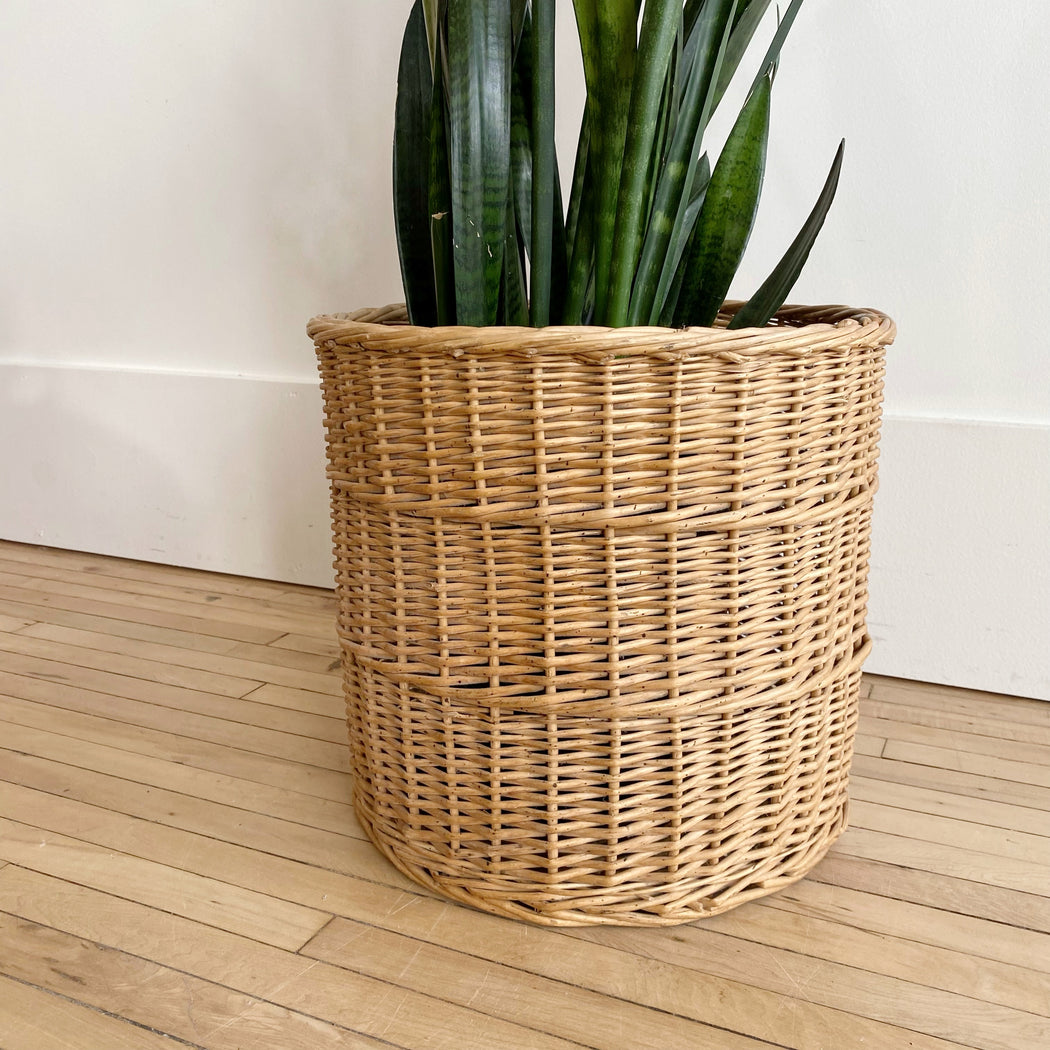 Large vintage natural woven basket-- great for holding your favorite large houseplant or other large bulky items around the home!