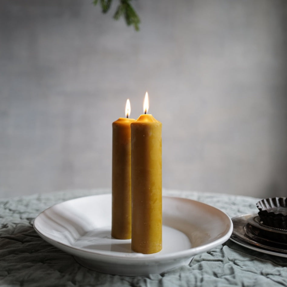 Our biggest candles for the longest evenings. One candle is enough for many hours, and a group of two or more makes a statement table centerpiece. Also available in a smaller size, "Small Big Beeswax Candle".