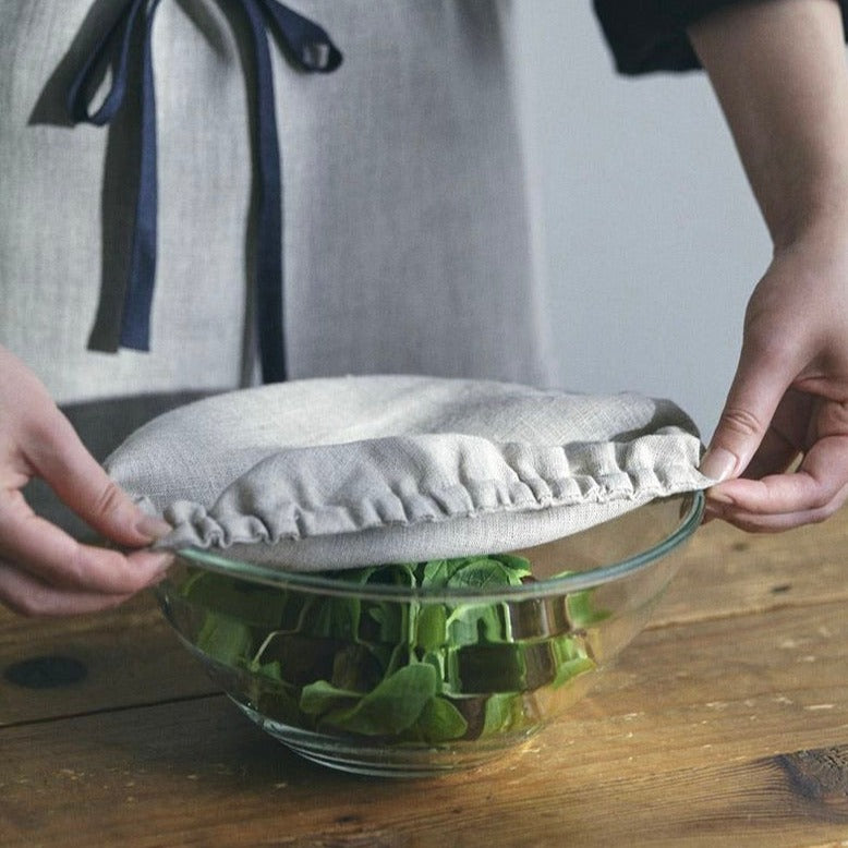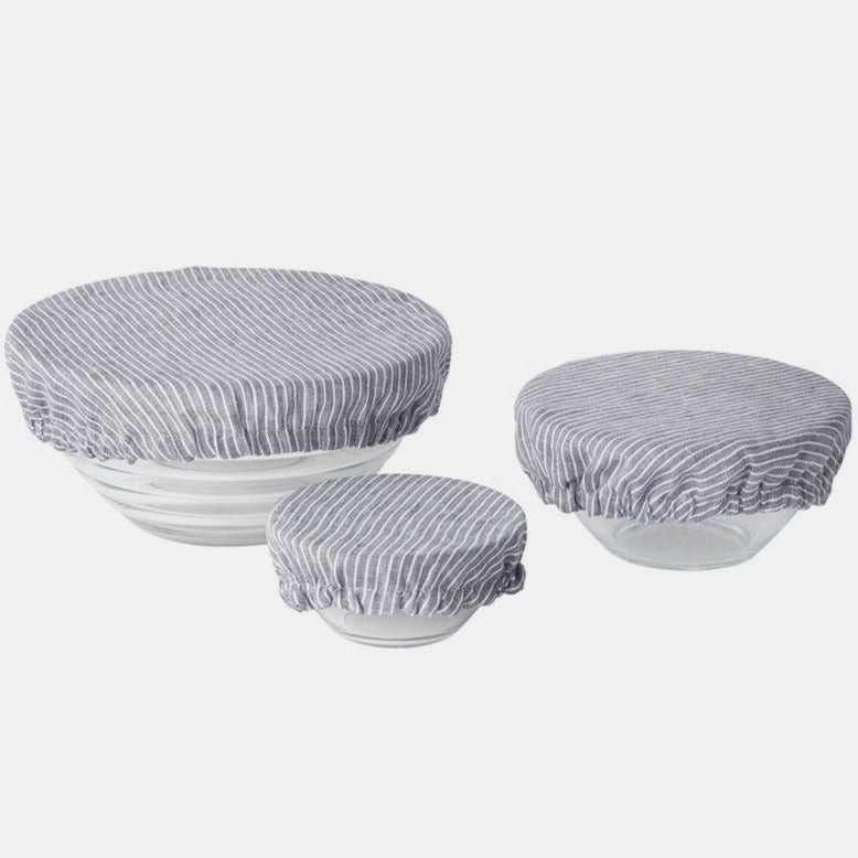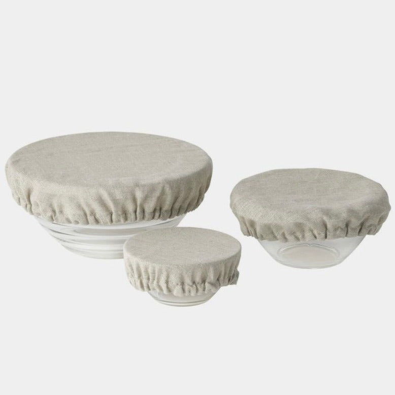 A set of three bowl covers made with linen fabric and elasticized around the edge to fit over your bowls. An eco-friendly and sustainable alternative to plastic wrap, these will be at home in any kitchen. Each set contains one small, one medium and one large cover.