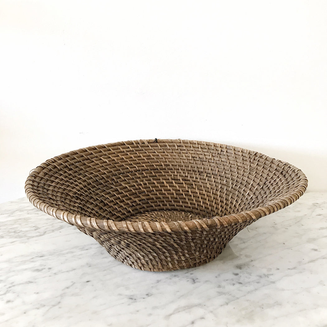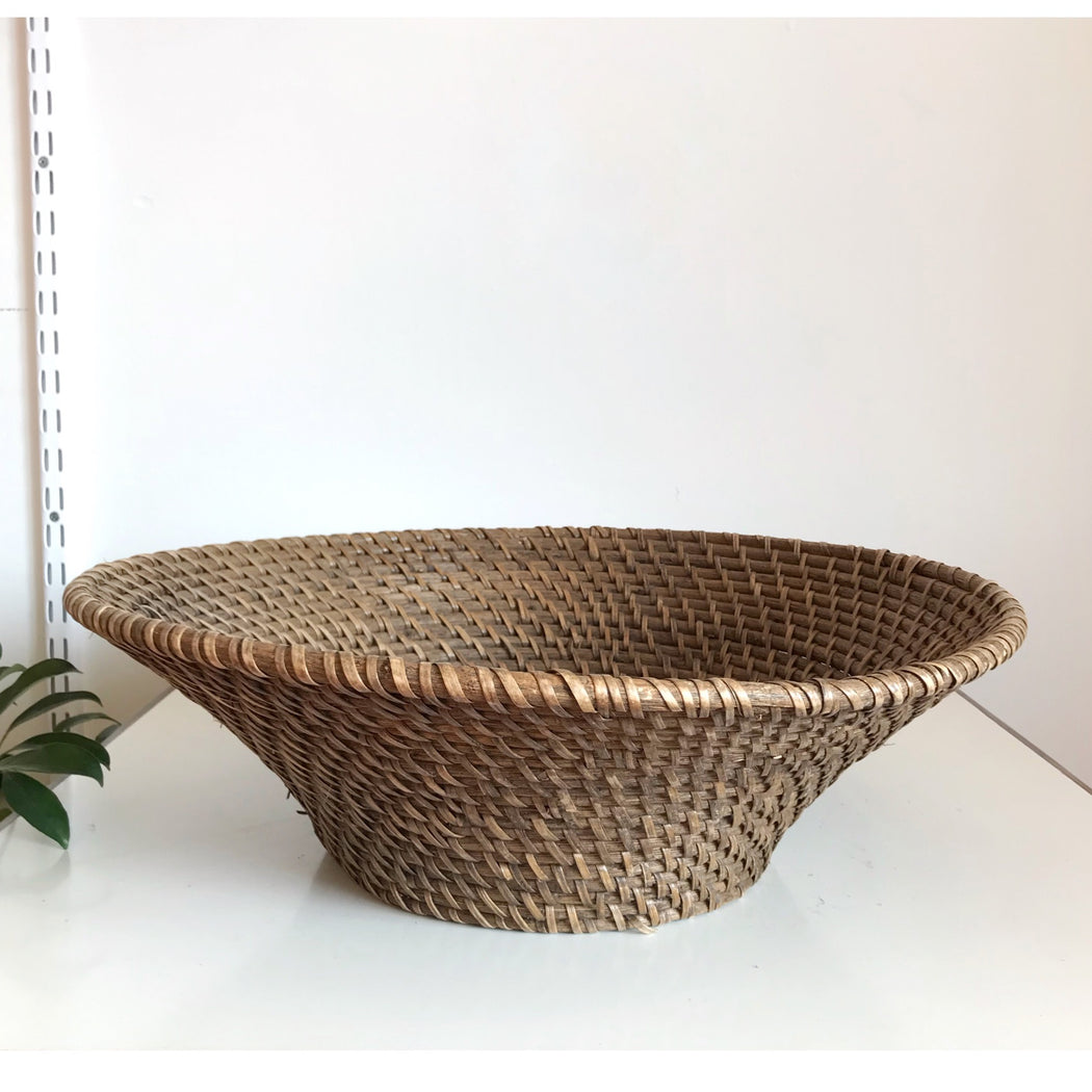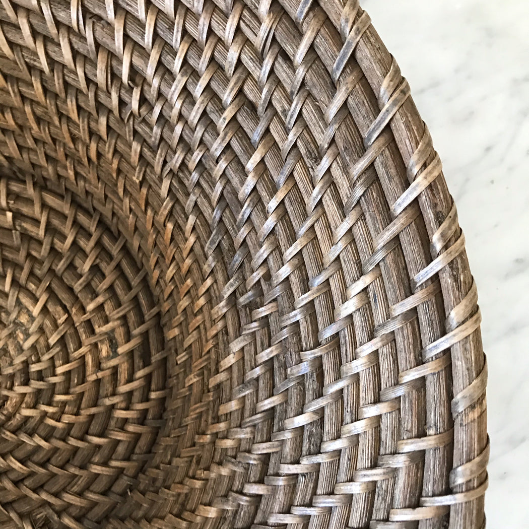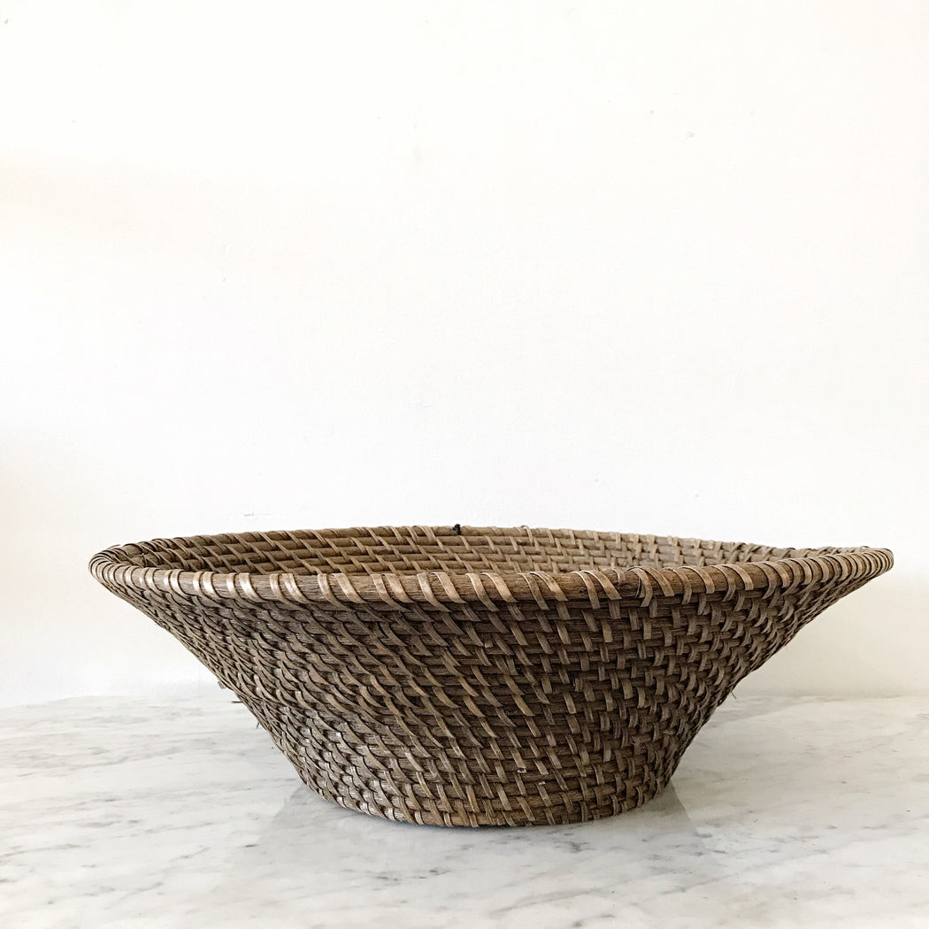 XL Vintage Woven Dark Wicker Bowl, 18.25”