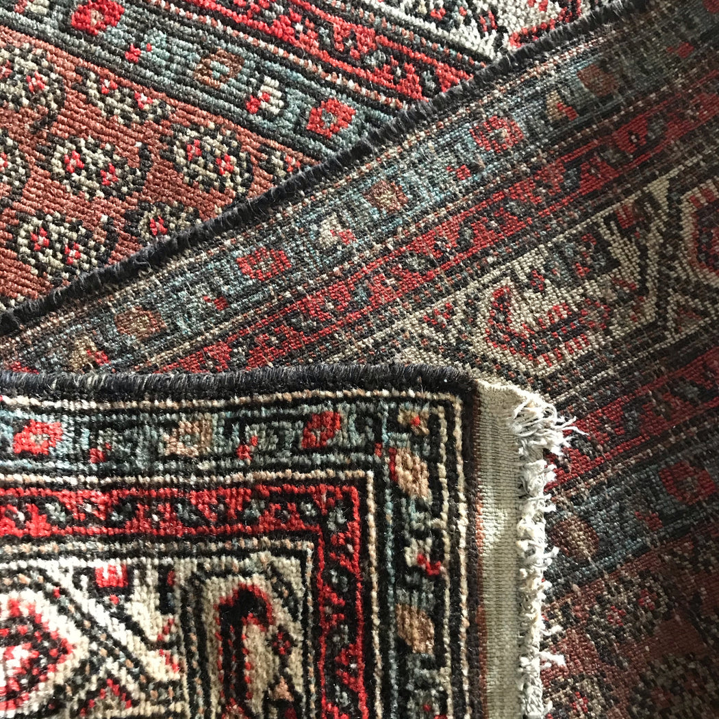 Condition: This is an antique item with visible wear considered to be part of its unique character and charm. There is some staining on the fringe.