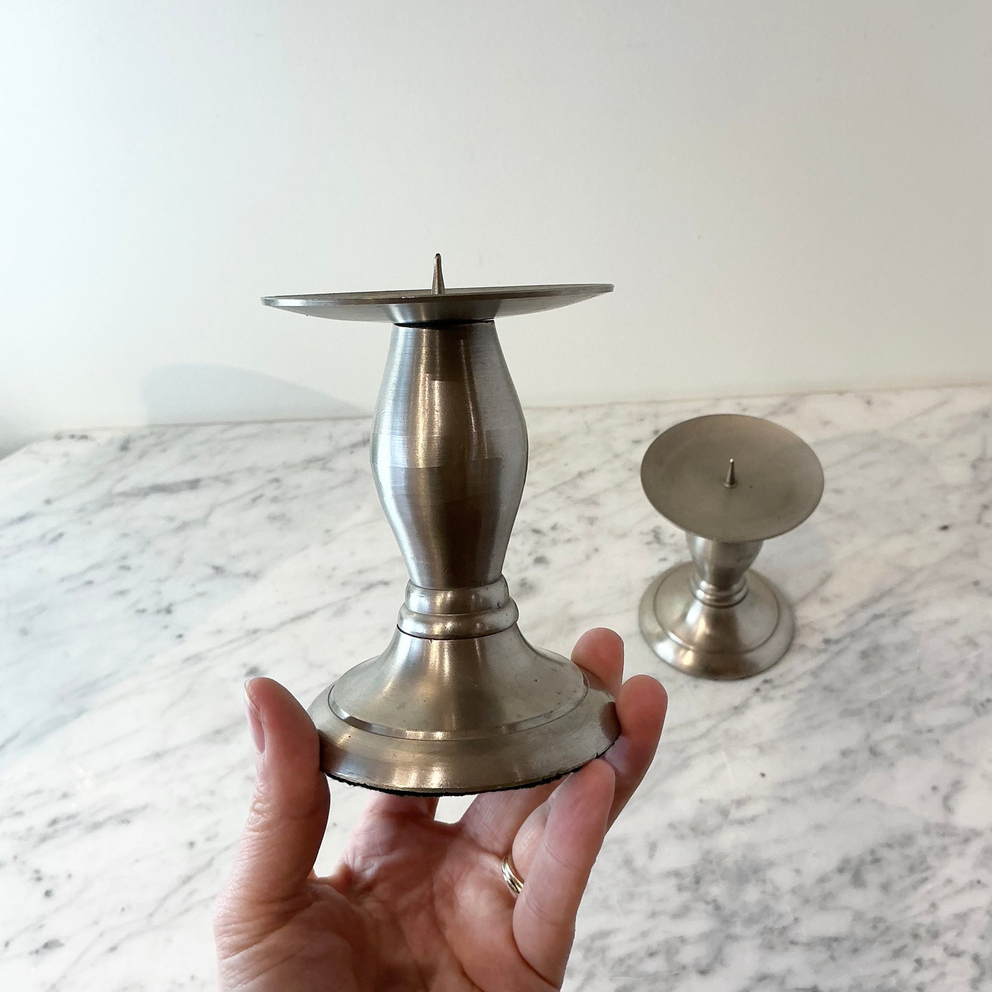 Pair of Found Brushed Silver Candle Holders