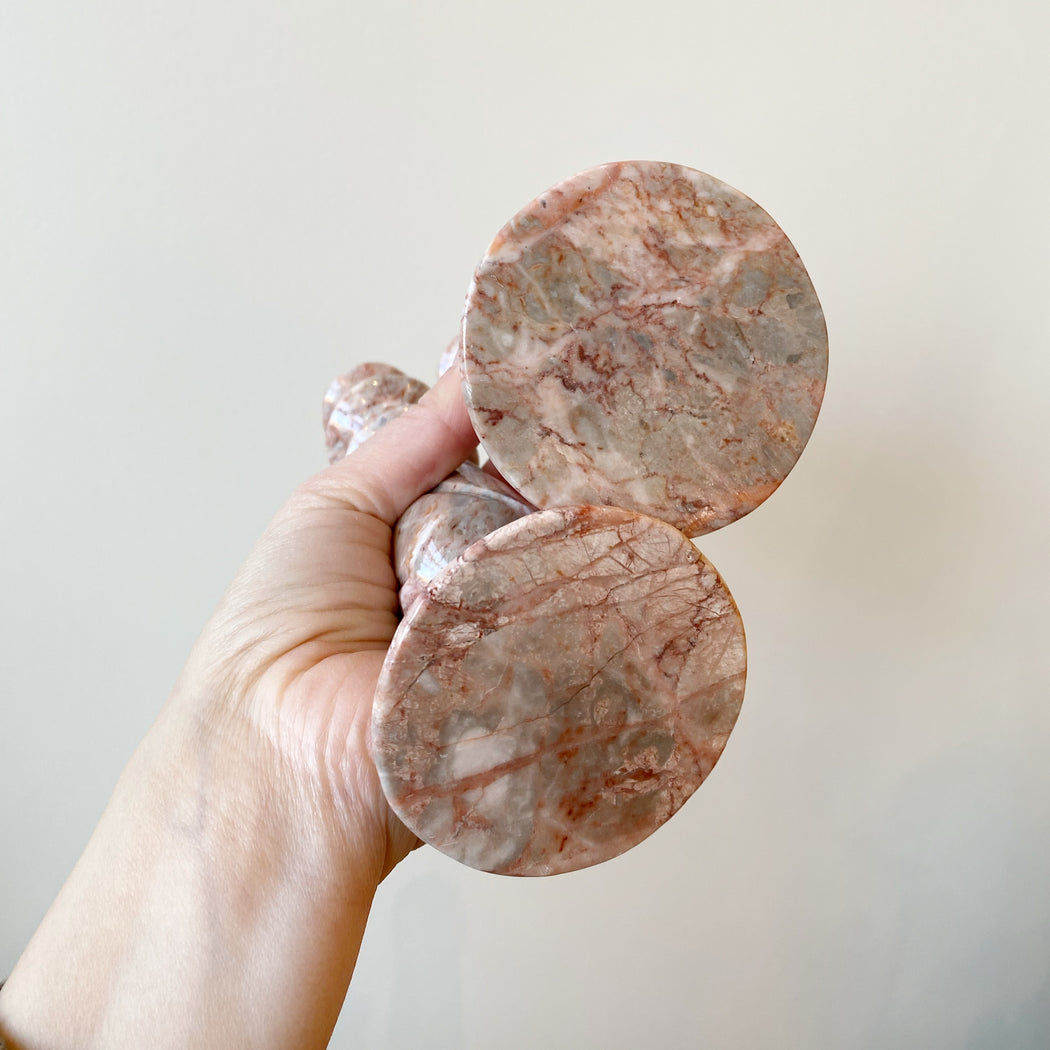 Pair of Vintage Pink Marble Candlestick Holders