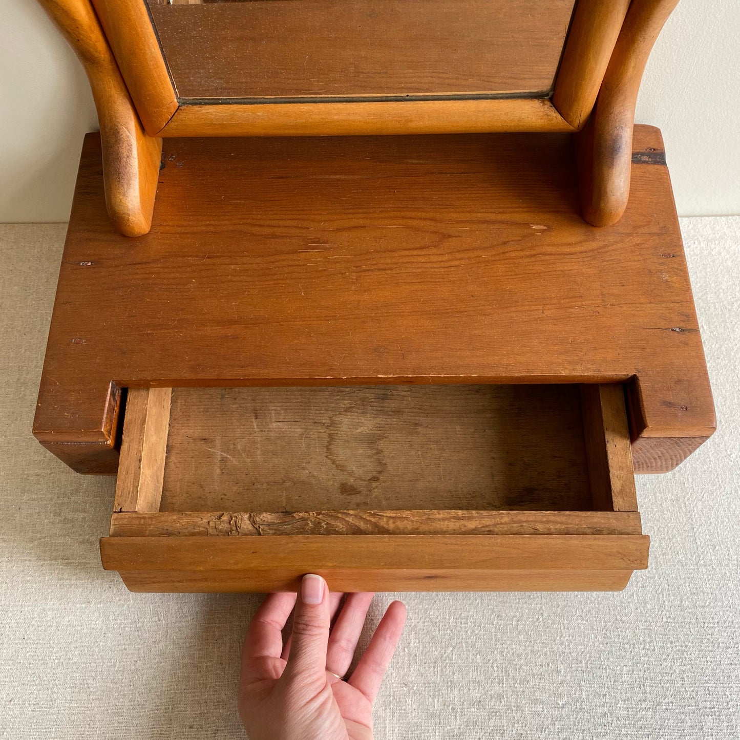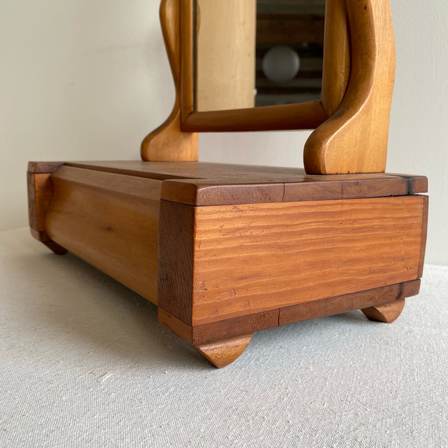 Simple, humble antique pine dresser-top vanity box with swivel mirror— a lovely piece to add charm and character to your room.