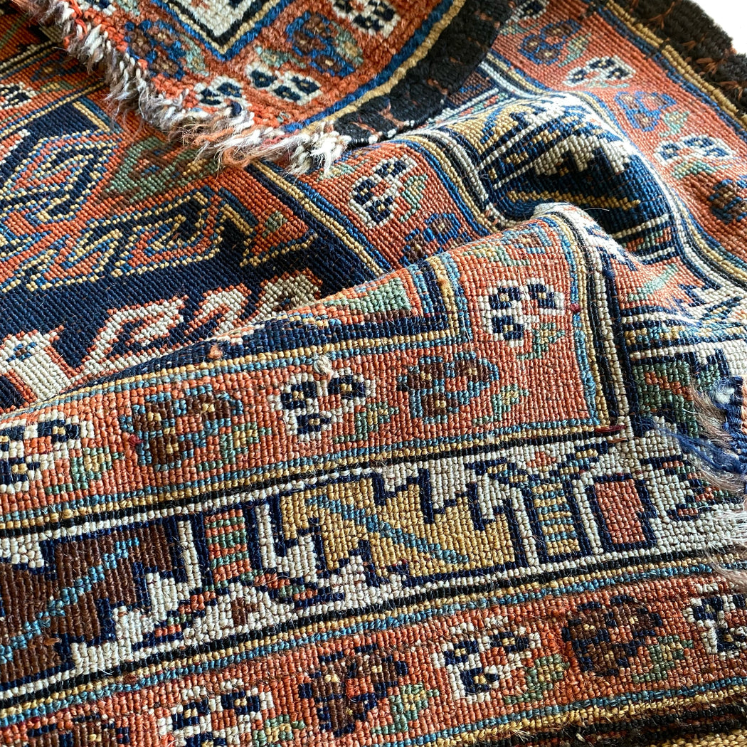 Condition: This is an antique item and has visible wear, including frayed and unraveling edges. The wear and condition of this piece is considered part of the character and charm.