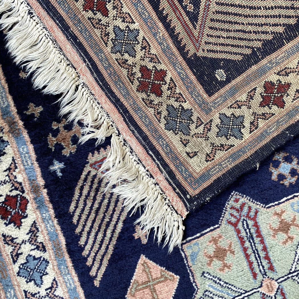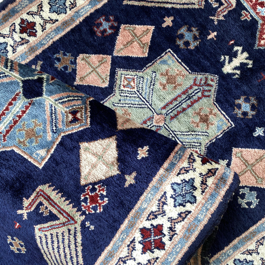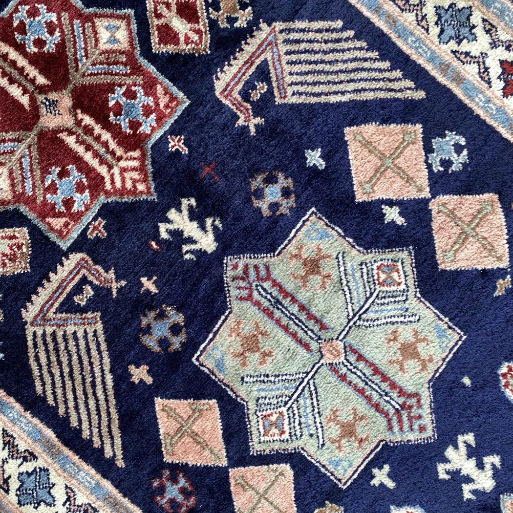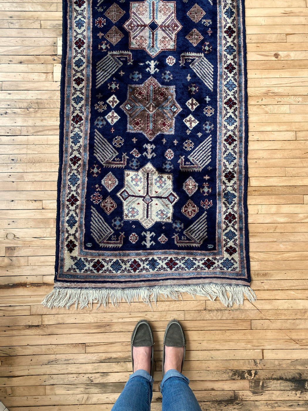 A shop favorite! Stunning vintage hand-knotted wool rug featuring intricate patterns throughout and 7 larger star shapes down the center. These colors are incredible!
