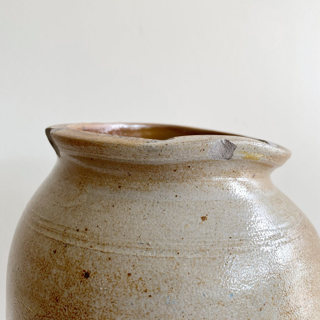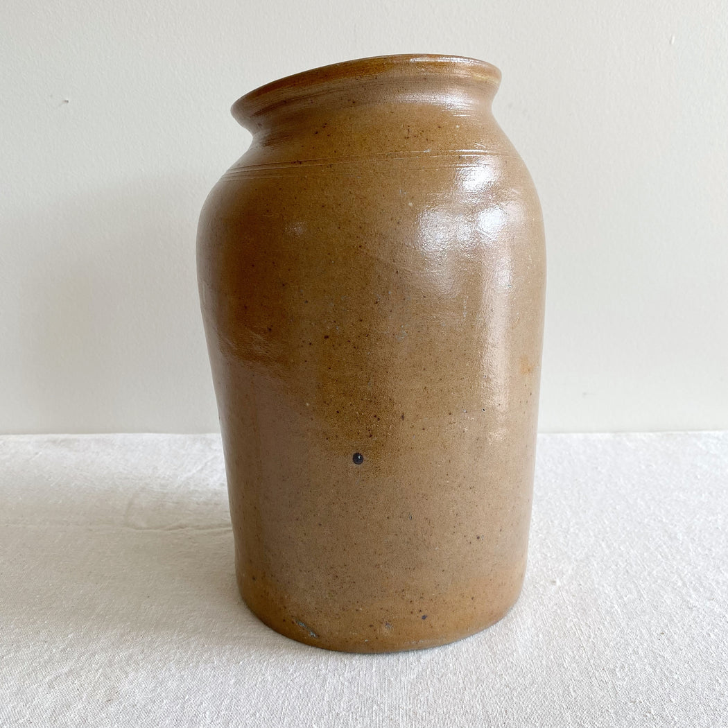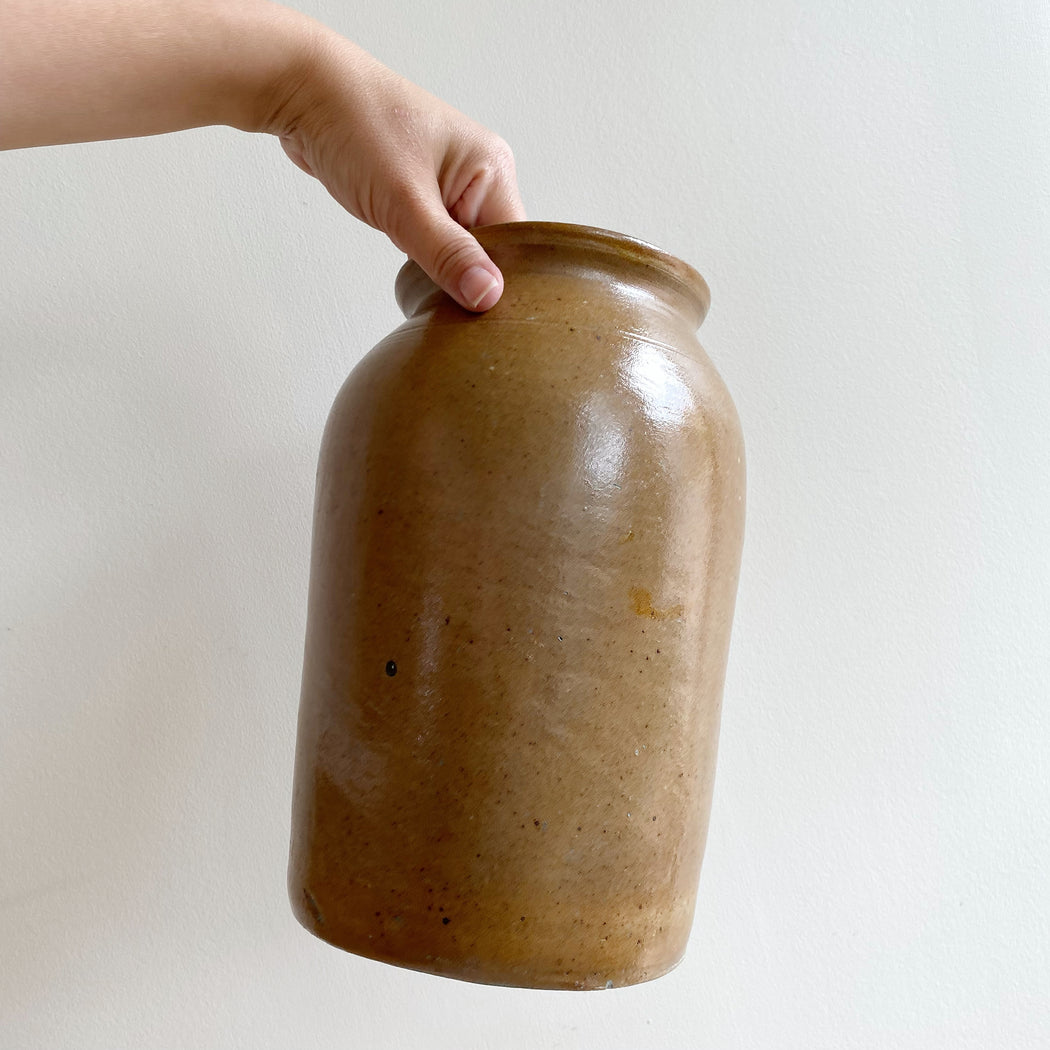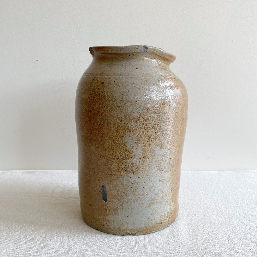Antique Stoneware Crock Jar Vase, 10.75"