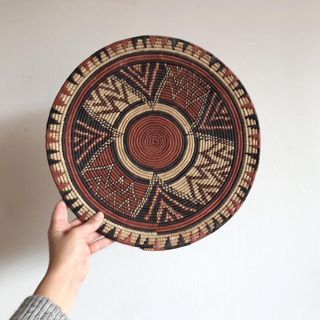 Stunning vintage hand-woven grass medallion! The intricate design and patterns are so beautiful and this would be a fantastic addition to any wall, bookcase, or table!