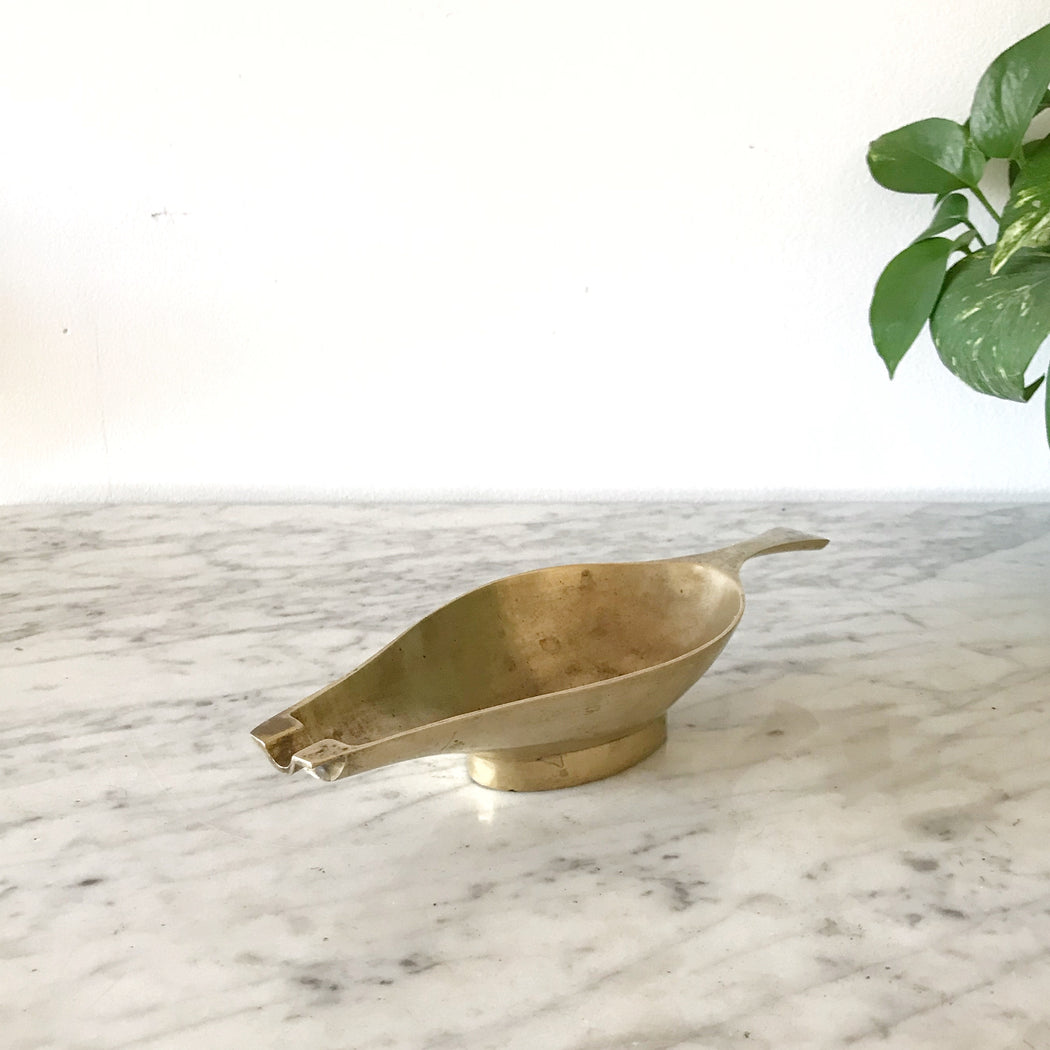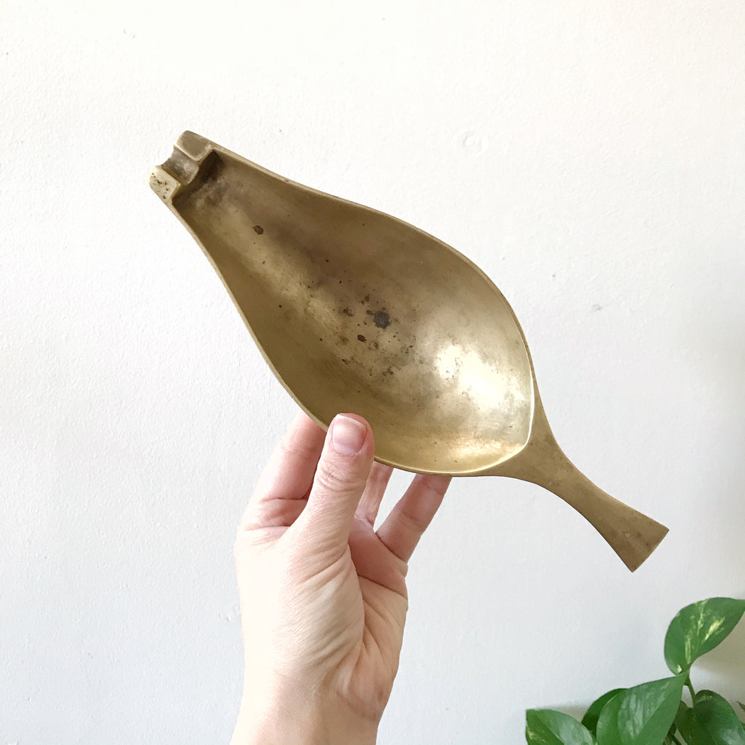 Large (and heavy!) vintage solid brass ashtray- perfect for burning Sage and Palo Santo smudge sticks!