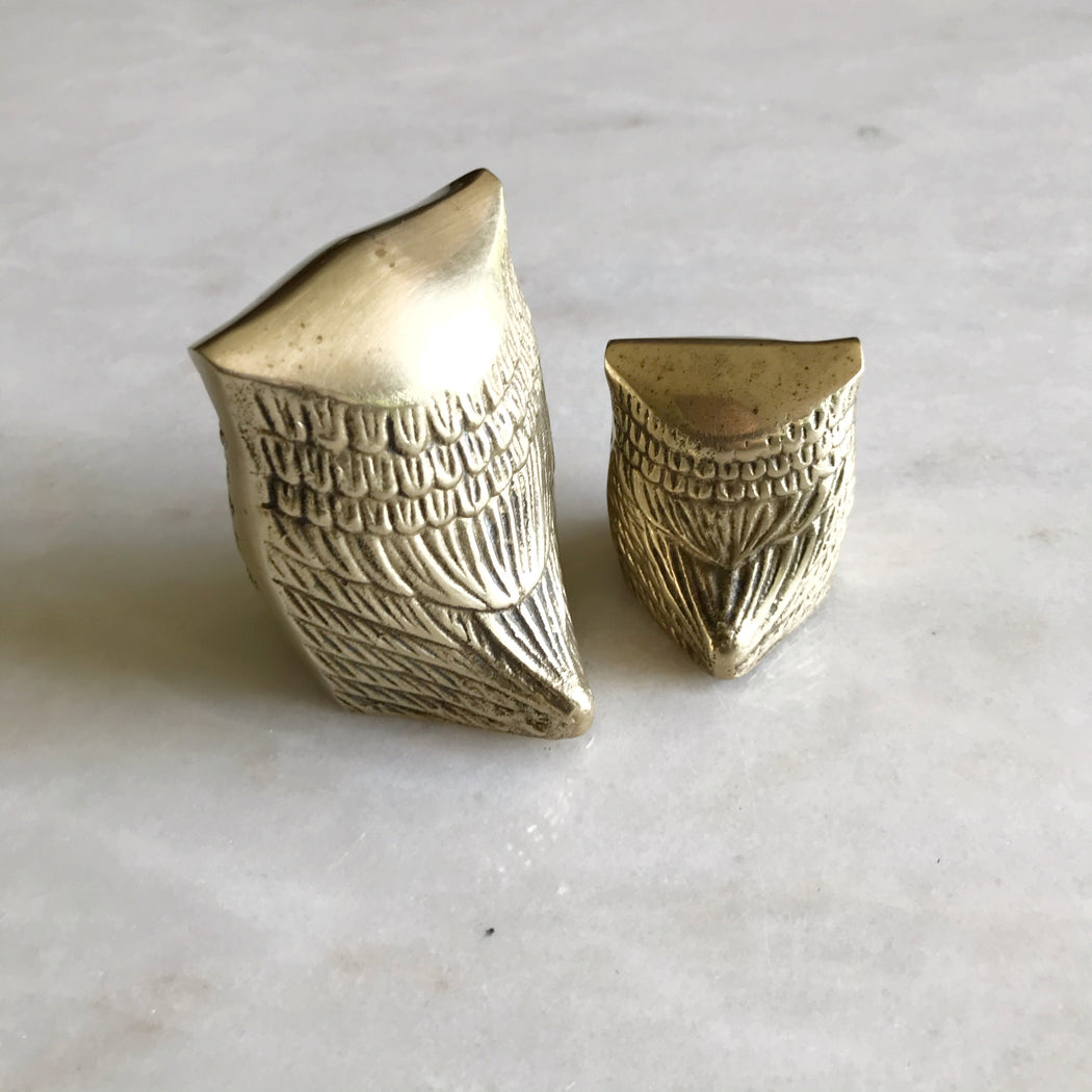 A vintage pair of brass owls! Could be a mother & baby, a father & baby, or maybe they're siblings... I don't know, but they sure are sweet!