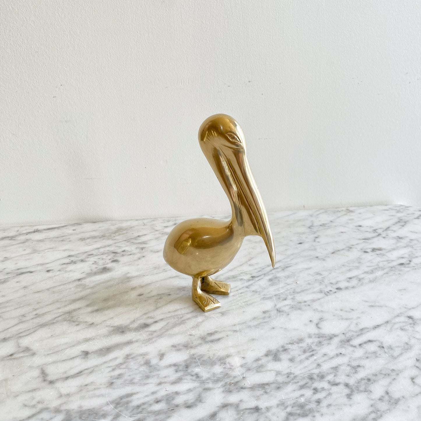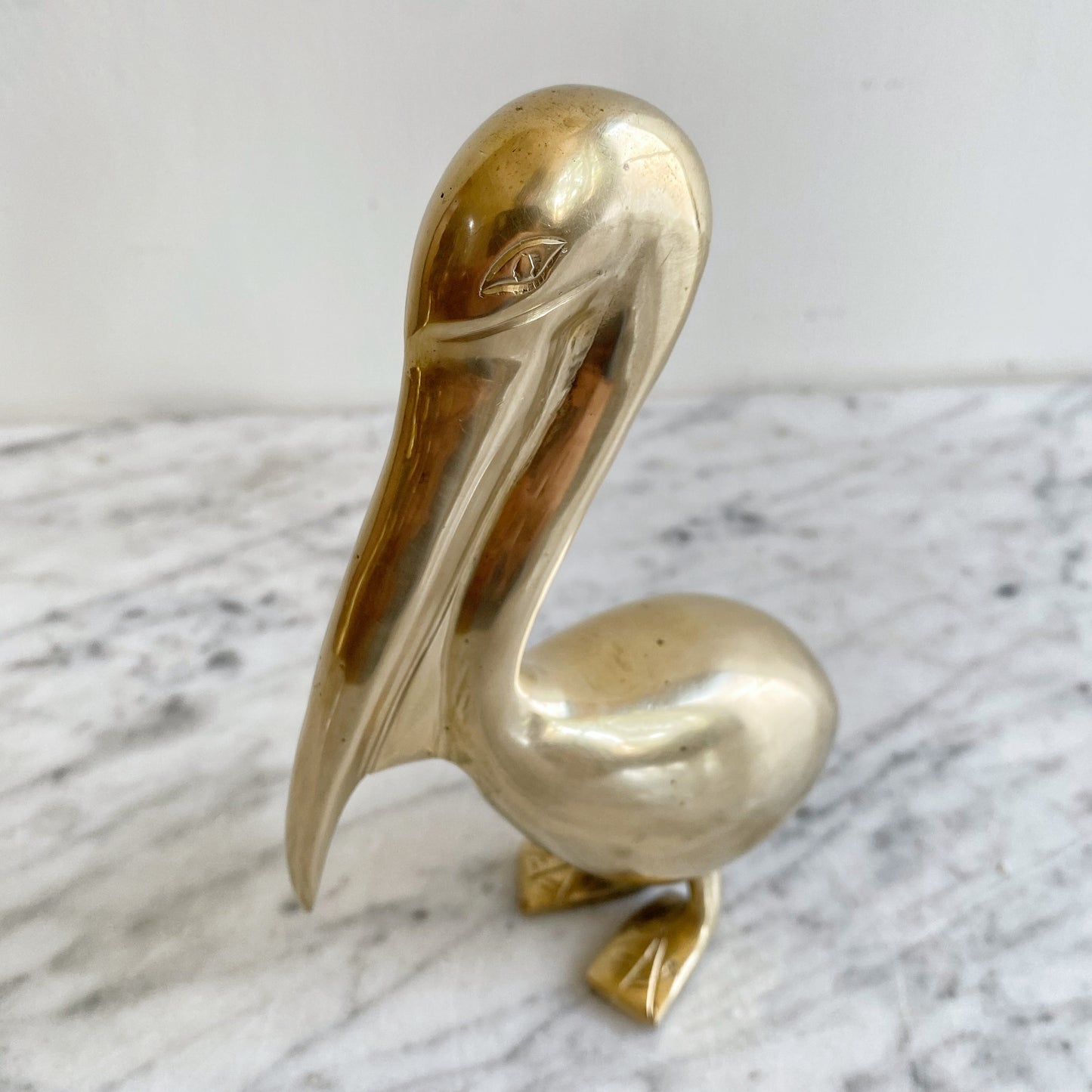 The most handsome vintage brass pelican we've ever seen! Sleek and nicely balanced, it features nice lines and detailing in the eyes and feet. It would be a great one to add to your collection or as a stand-alone piece!