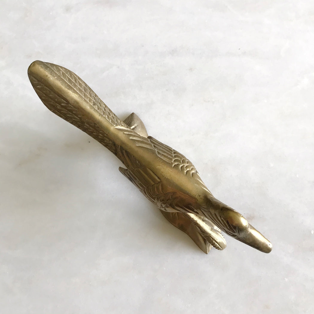 Super speedy looking vintage brass roadrunner! A cool addition to any bookcase, shelf, or table. We love its detailed feathers and friendly face!