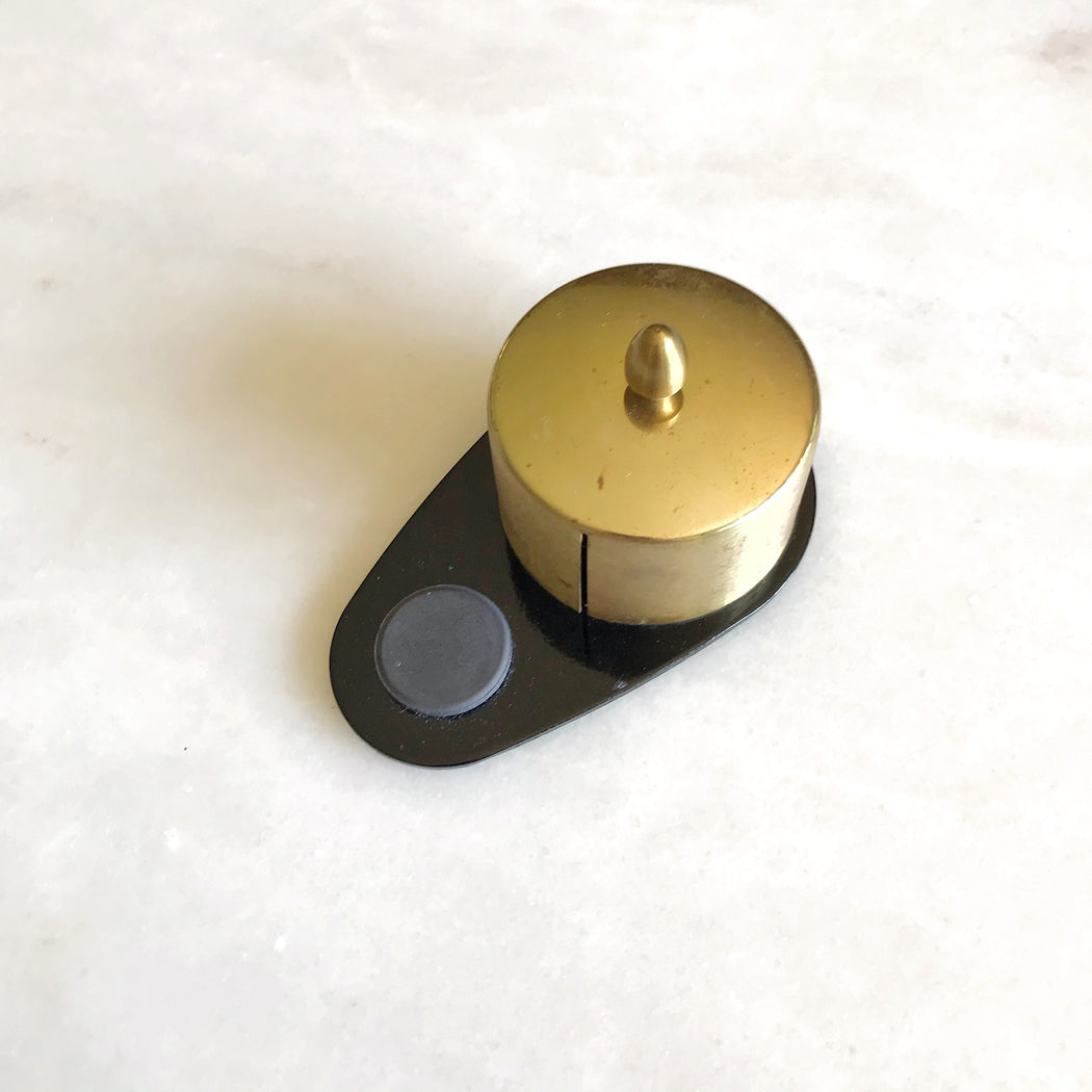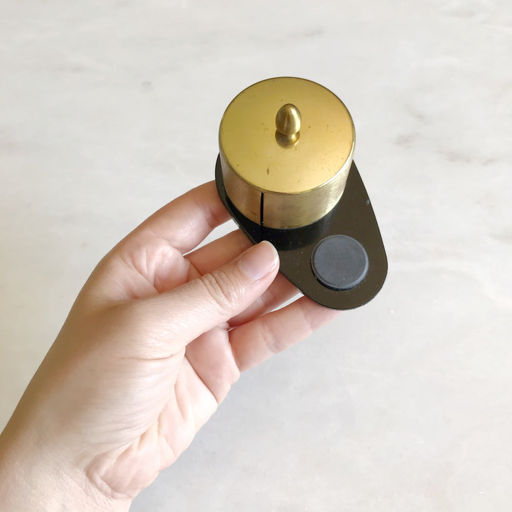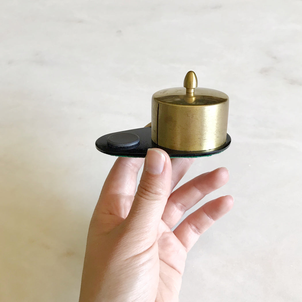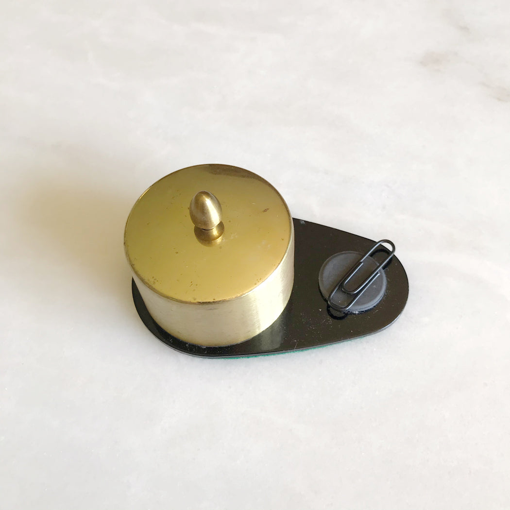 A nice vintage stamp dispenser (which is also pretty great for washi tape!) and a magnet for holding paper clips! Green felt bottom to protect surfaces.