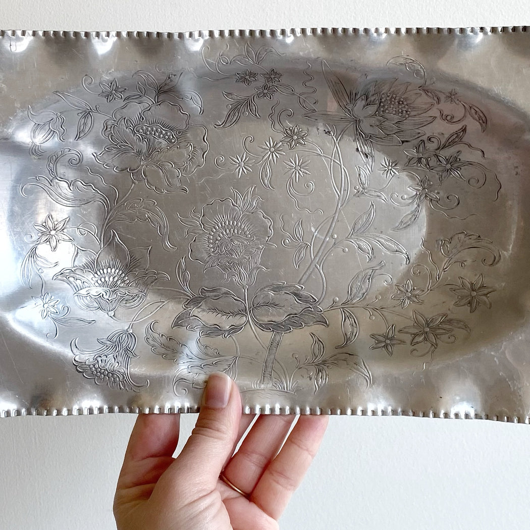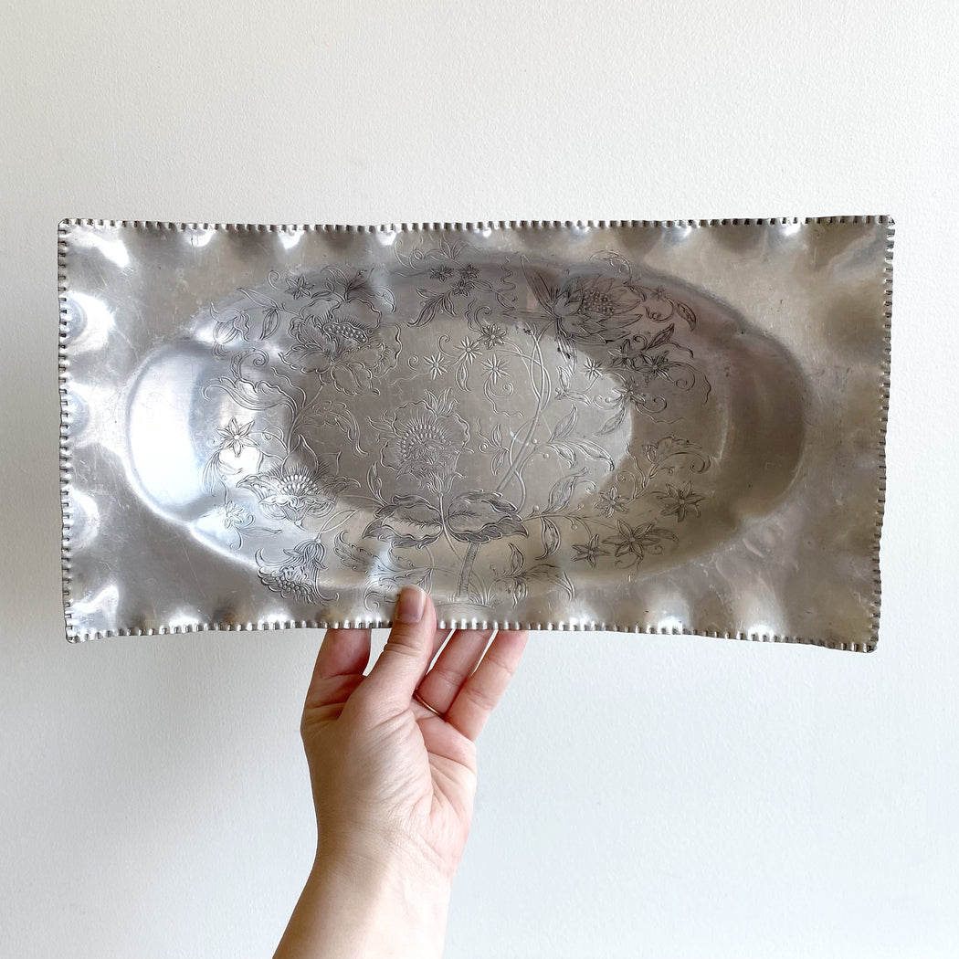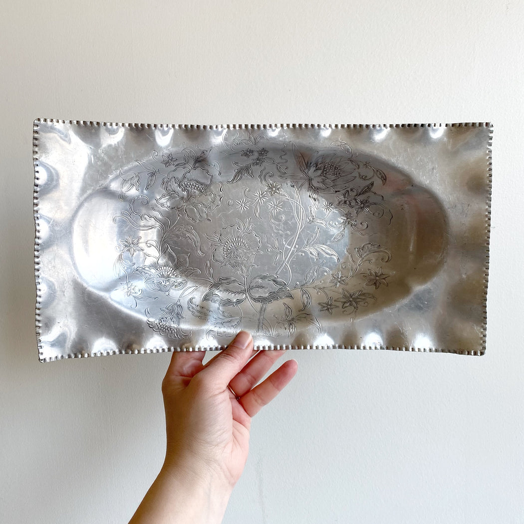 Vintage Decorative Etched Aluminum Tray / Dish