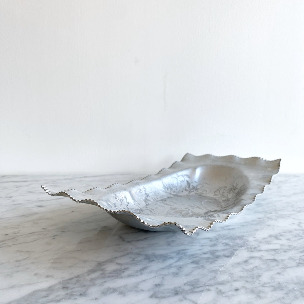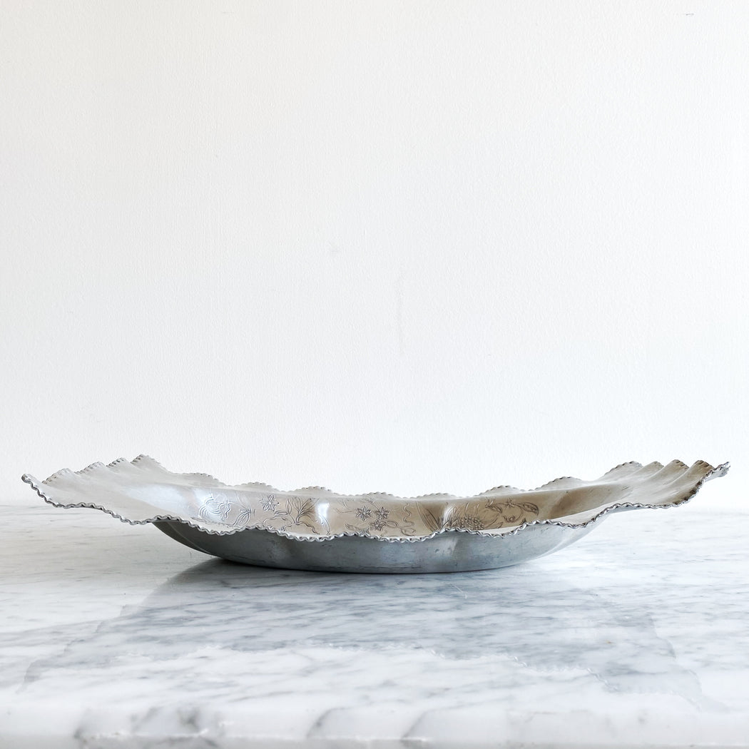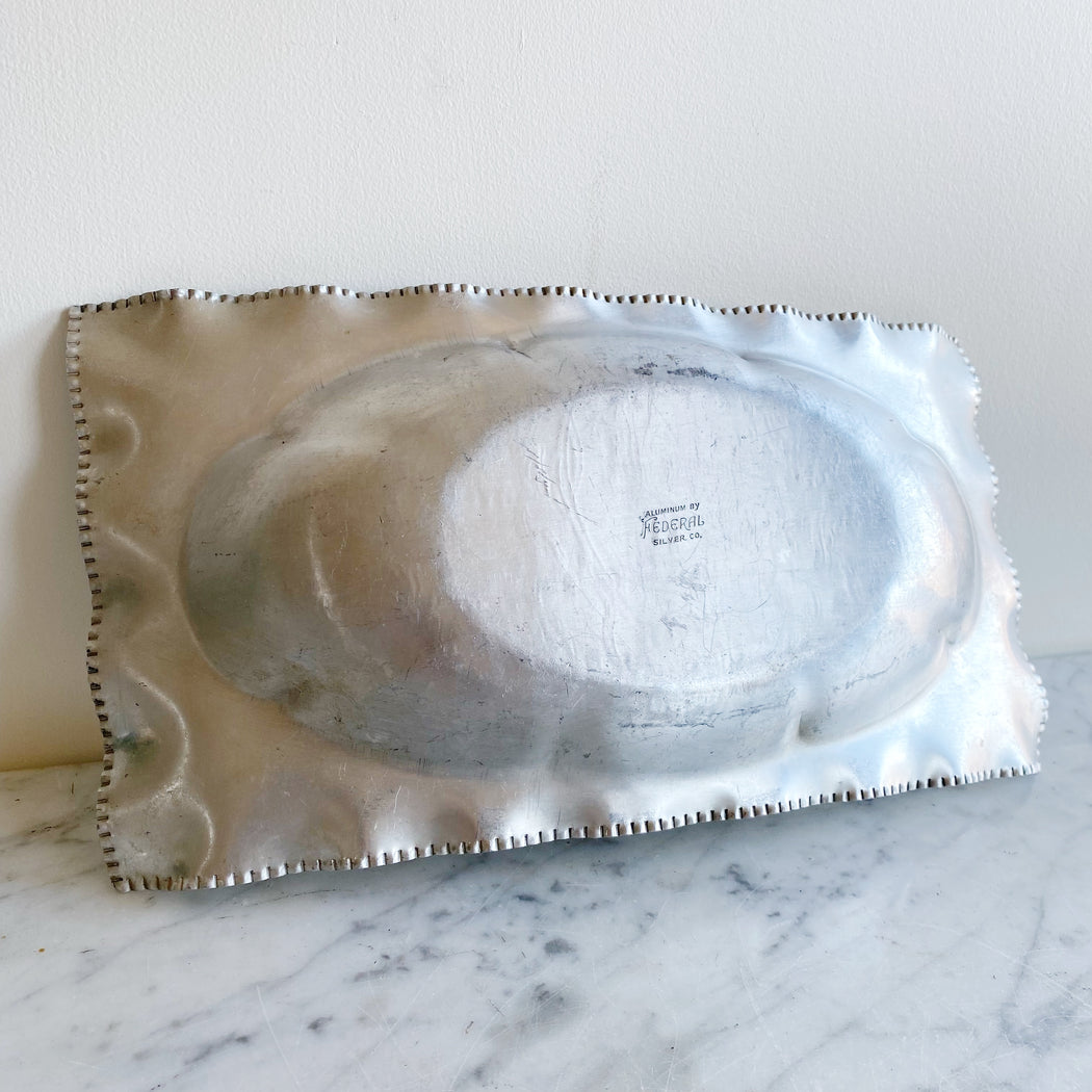 Vintage Decorative Etched Aluminum Tray / Dish