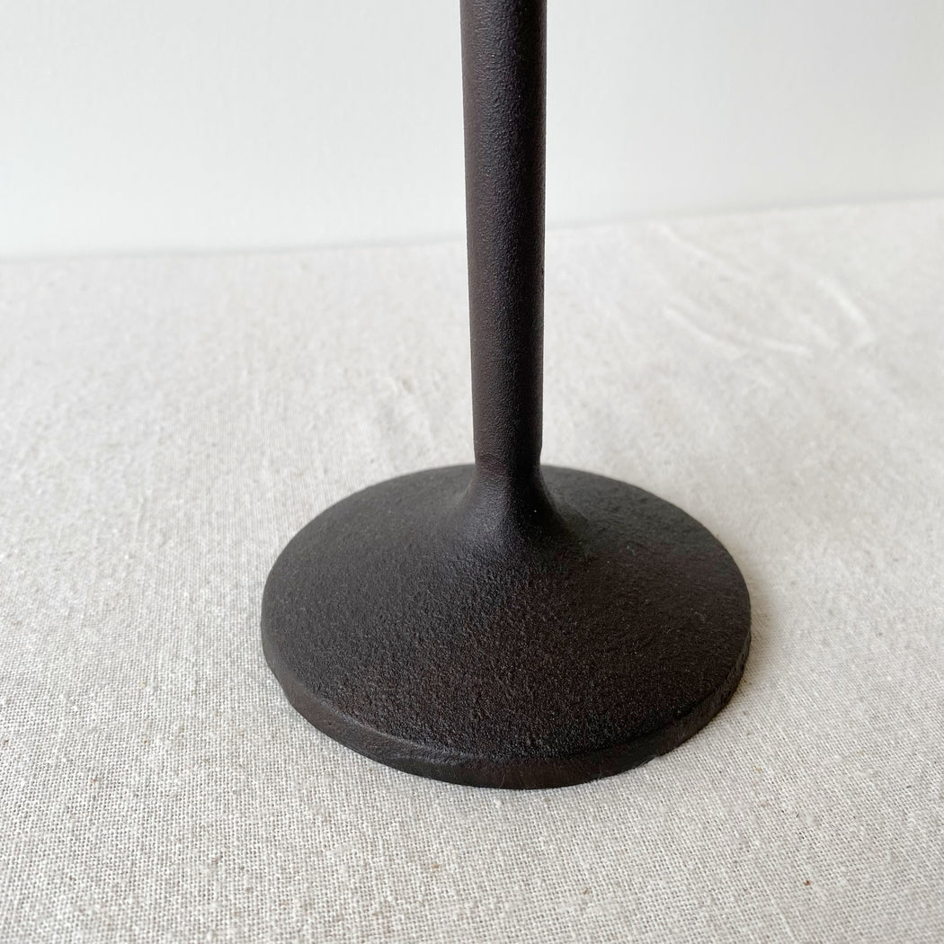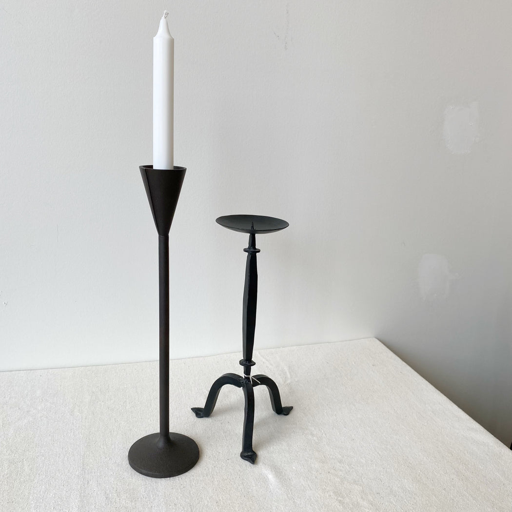 Sleek, slender, and lovely, this found iron candle holder is the perfect compliment to any space. It’s beautiful enough to stand alone, or pair with other iron pieces for a collected style.