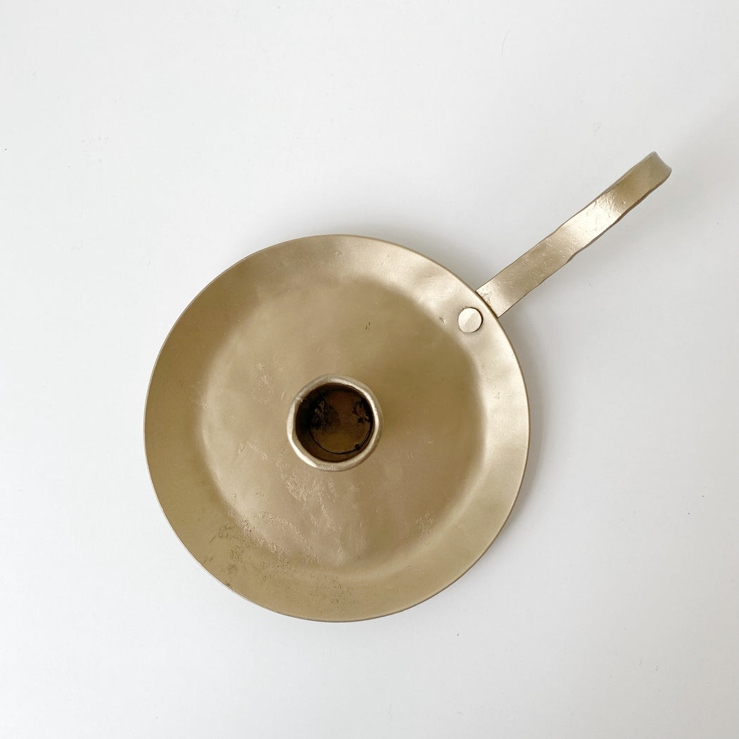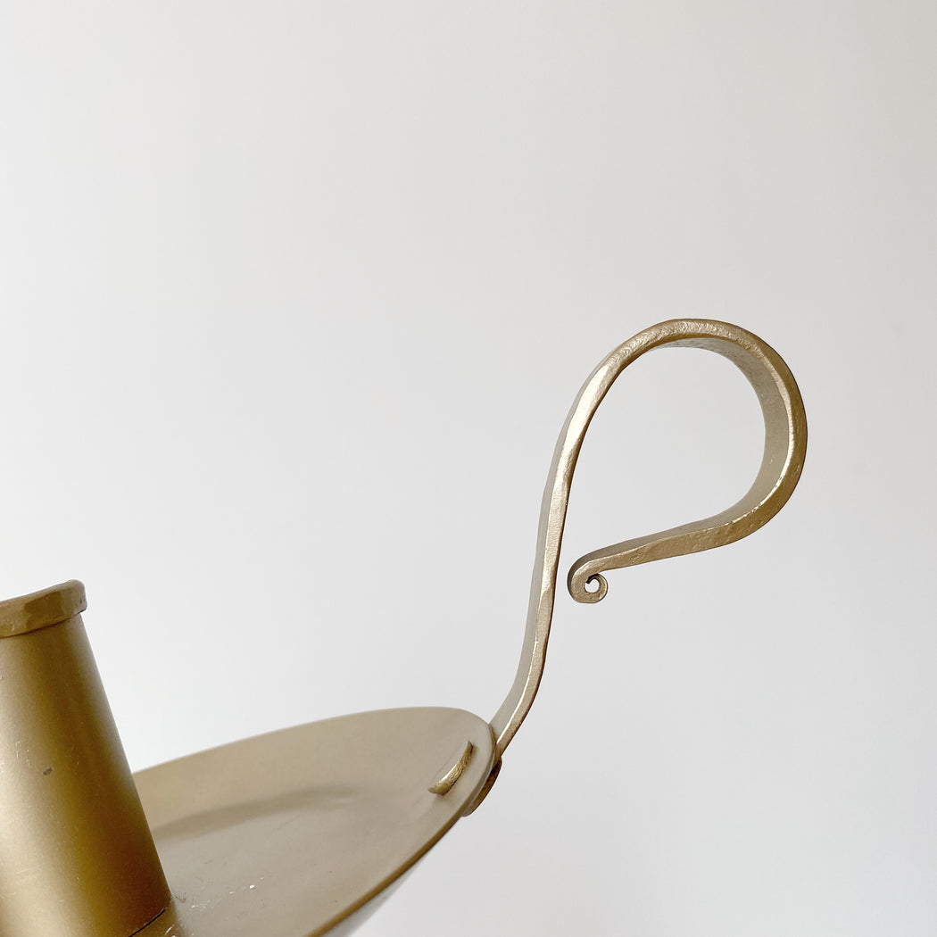 Candles are an easy way to add warmth and comfort to any space, and this lovely holder is one way to assist you in doing just that! A classic “chamber stick” design with a soft minimalist approach, we love the simplicity of this golden candlestick holder paired with simple white or beeswax tapers!