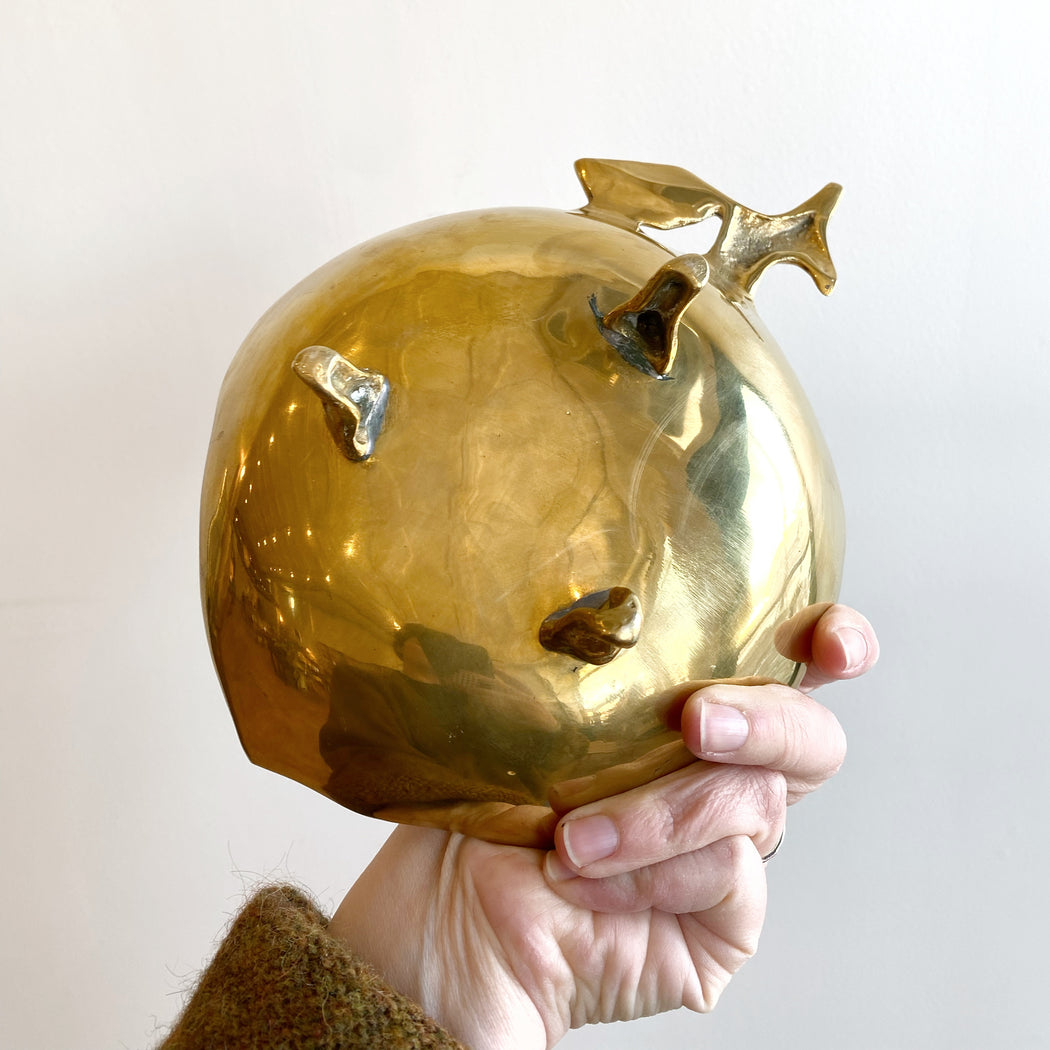 Lovely (and very heavy!) vintage solid brass footed dish in an oversized leaf design.