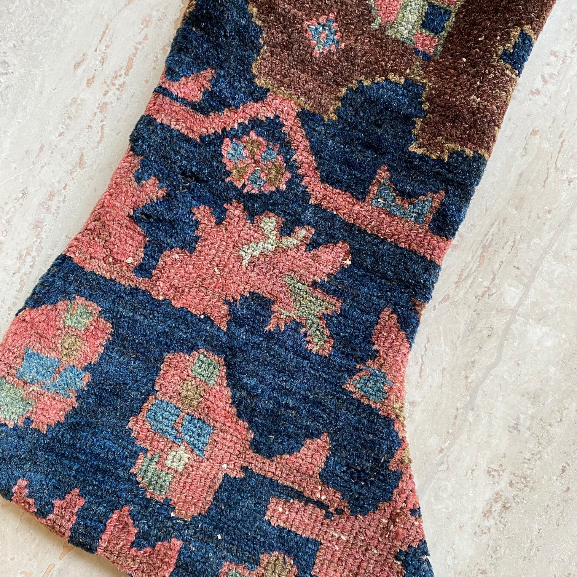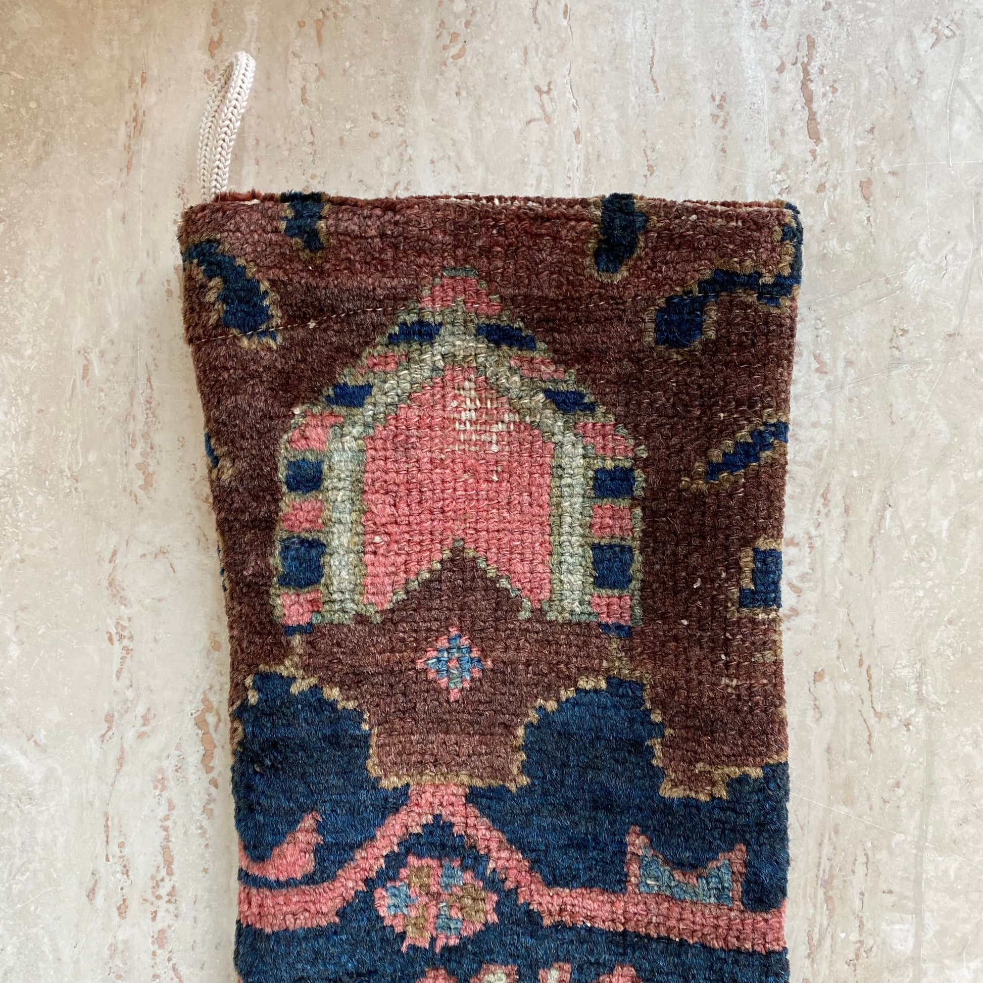 Heirloom quality holiday stocking to be enjoyed for years to come! Each one is crafted by hand from vintage hand-woven Turkish rugs that are 60+ years old. The backing is a nice neutral fabric, and the interior is lightly lined. Each one is unique and special-- a treasured addition to your decor and festivities!