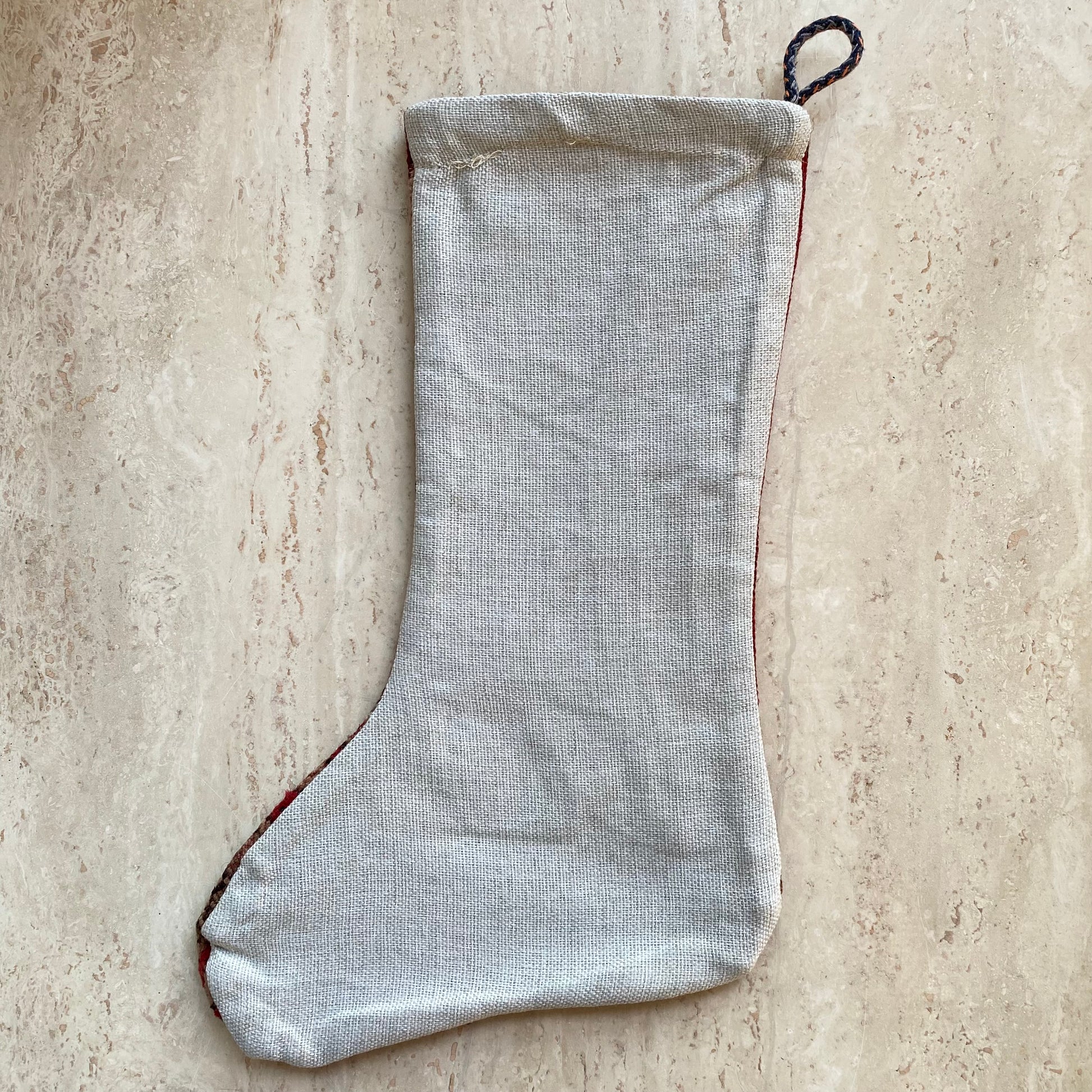 Heirloom quality holiday stocking to be enjoyed for years to come! Each one is crafted by hand from vintage hand-woven Turkish rugs that are 60+ years old. The backing is a nice neutral fabric, and the interior is lightly lined. Each one is unique and special-- a treasured addition to your decor and festivities!