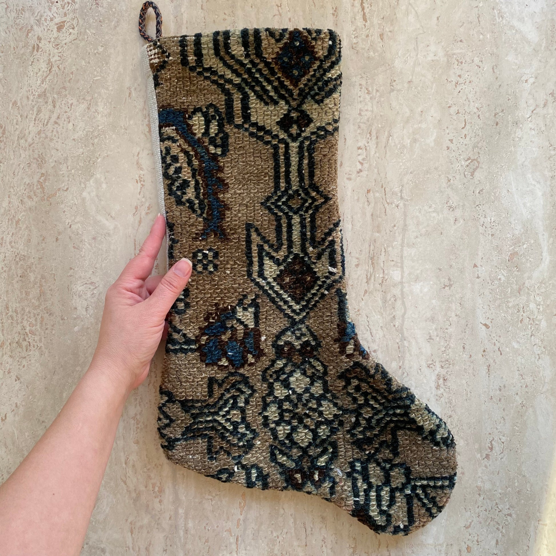 Heirloom quality holiday stocking to be enjoyed for years to come! Each one is crafted by hand from vintage hand-woven Turkish rugs that are 60+ years old. The backing is a nice neutral fabric, and the interior is lightly lined. Each one is unique and special-- a treasured addition to your decor and festivities!