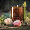 Crafted from hand-poured Michigan-harvested beeswax and soy, the candle burns up to 50 hours.