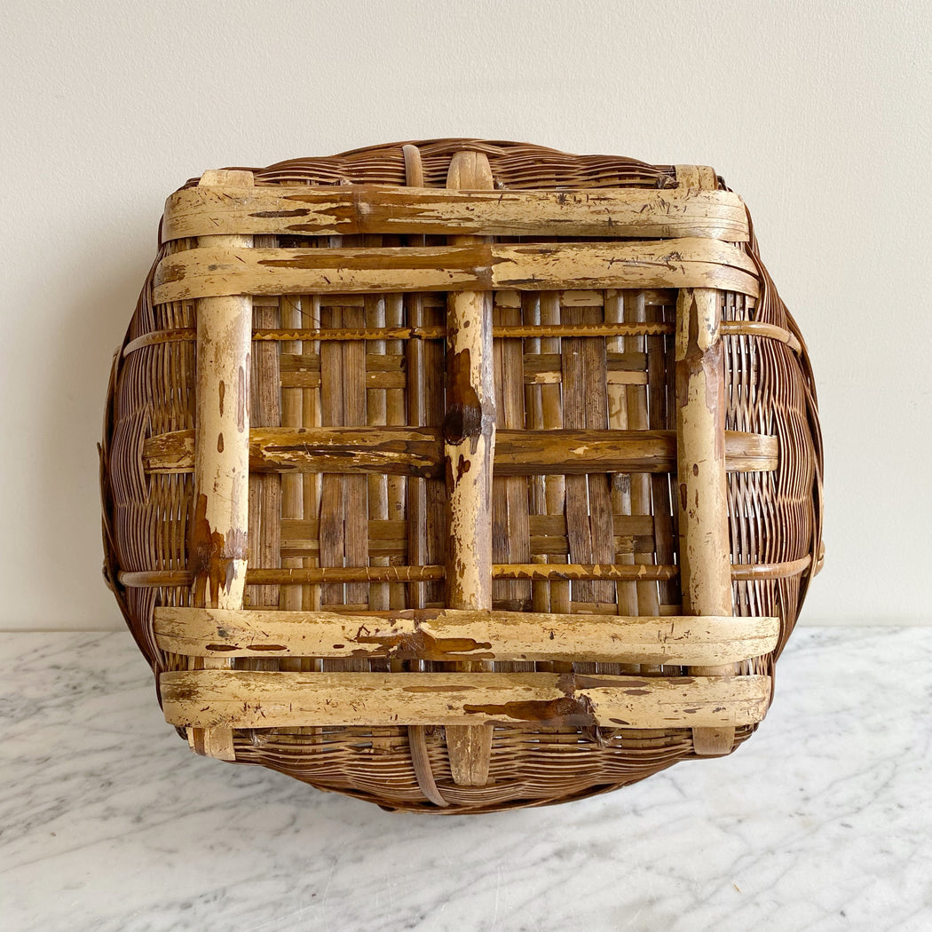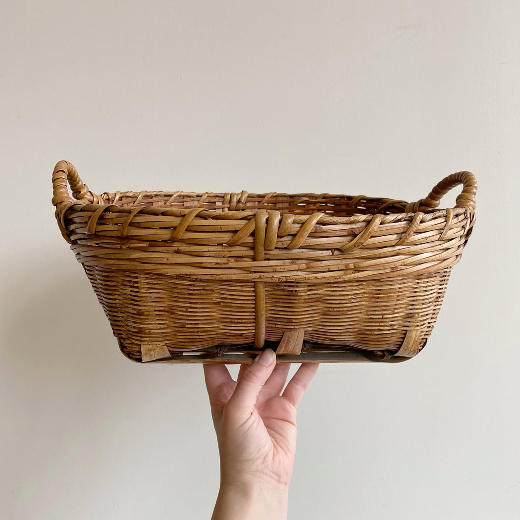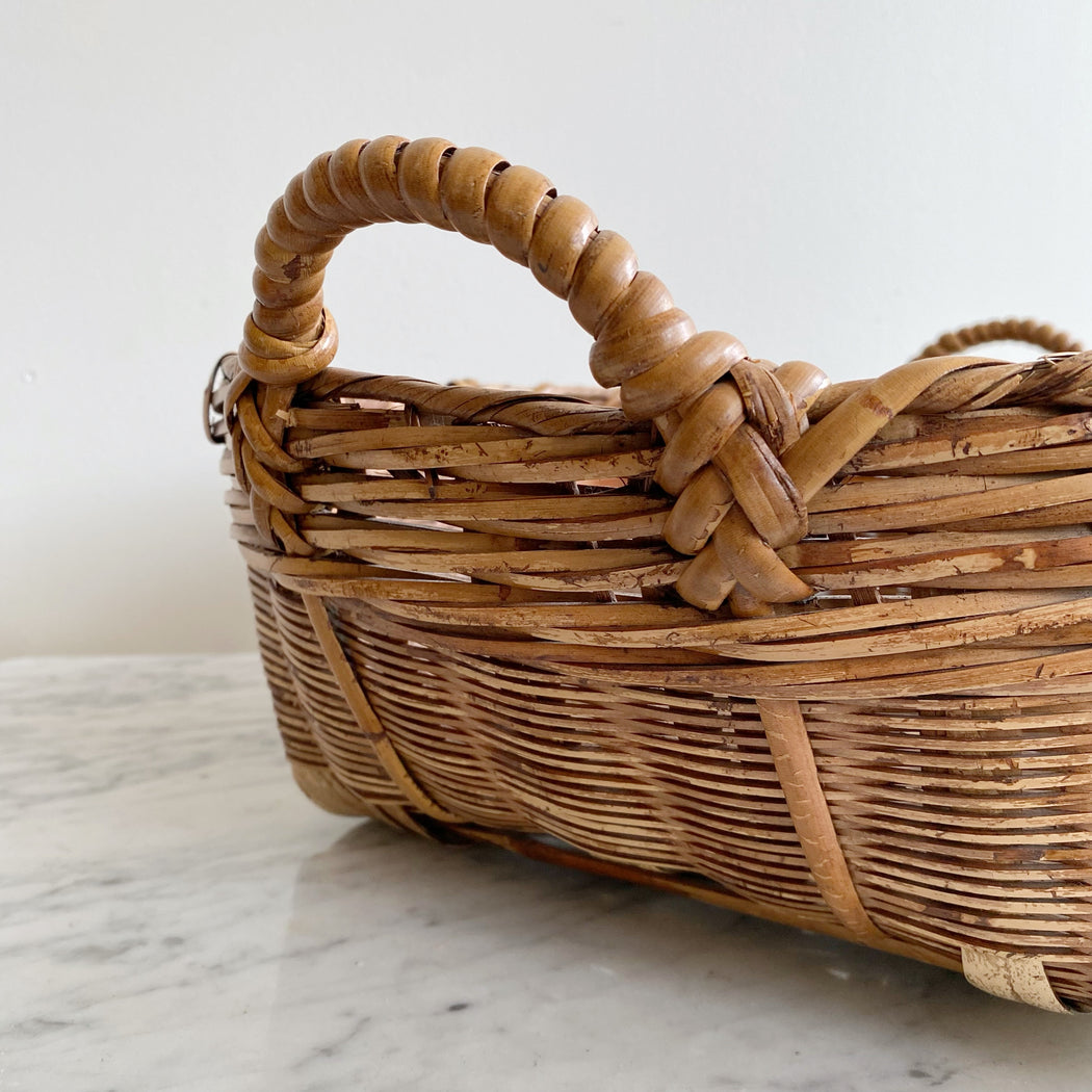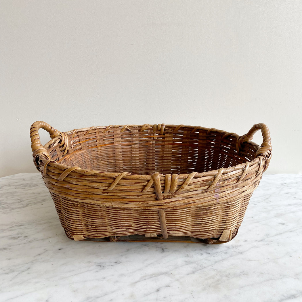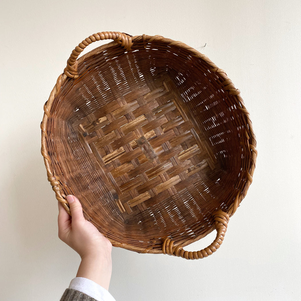 Large Shallow Vintage Basket with Handles