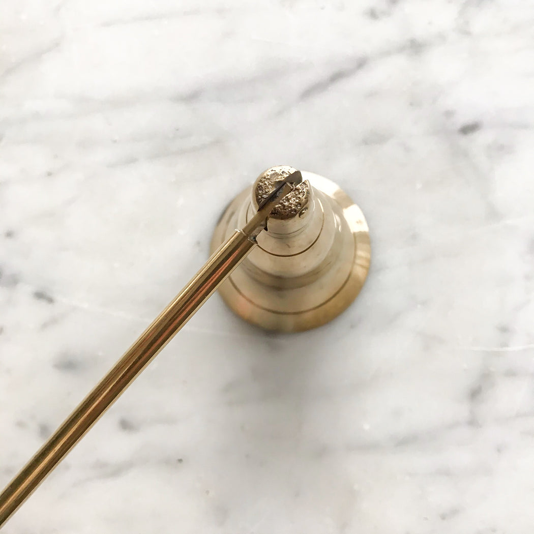 A beautiful, large vintage brass candle snuffer for your candle collection! It is extra long and features a lovely thicker handle.