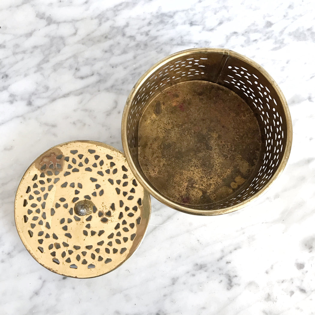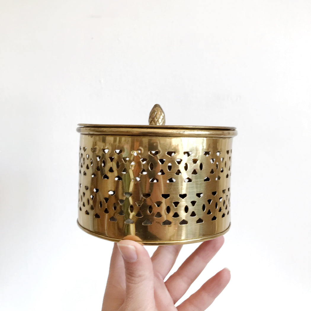 We love vintage brass potpourri containers for all kinds of things... Storing our sage and Palo Santo sticks, or organising bits and bobs around the house are just a couple of ways we use ours! Bonus- they look beautiful on any shelf, bookcase, or table!