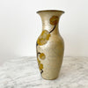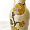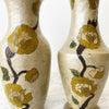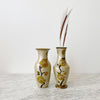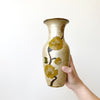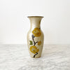 Beautiful vintage brass vase with enameled floral designs. The pearly tan color with yellow flowers give a wonderful warmth to any space.