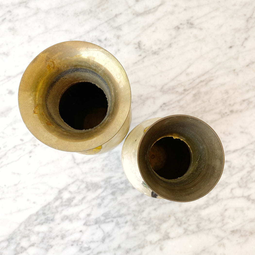Large Vintage Enameled Brass Flower Vase