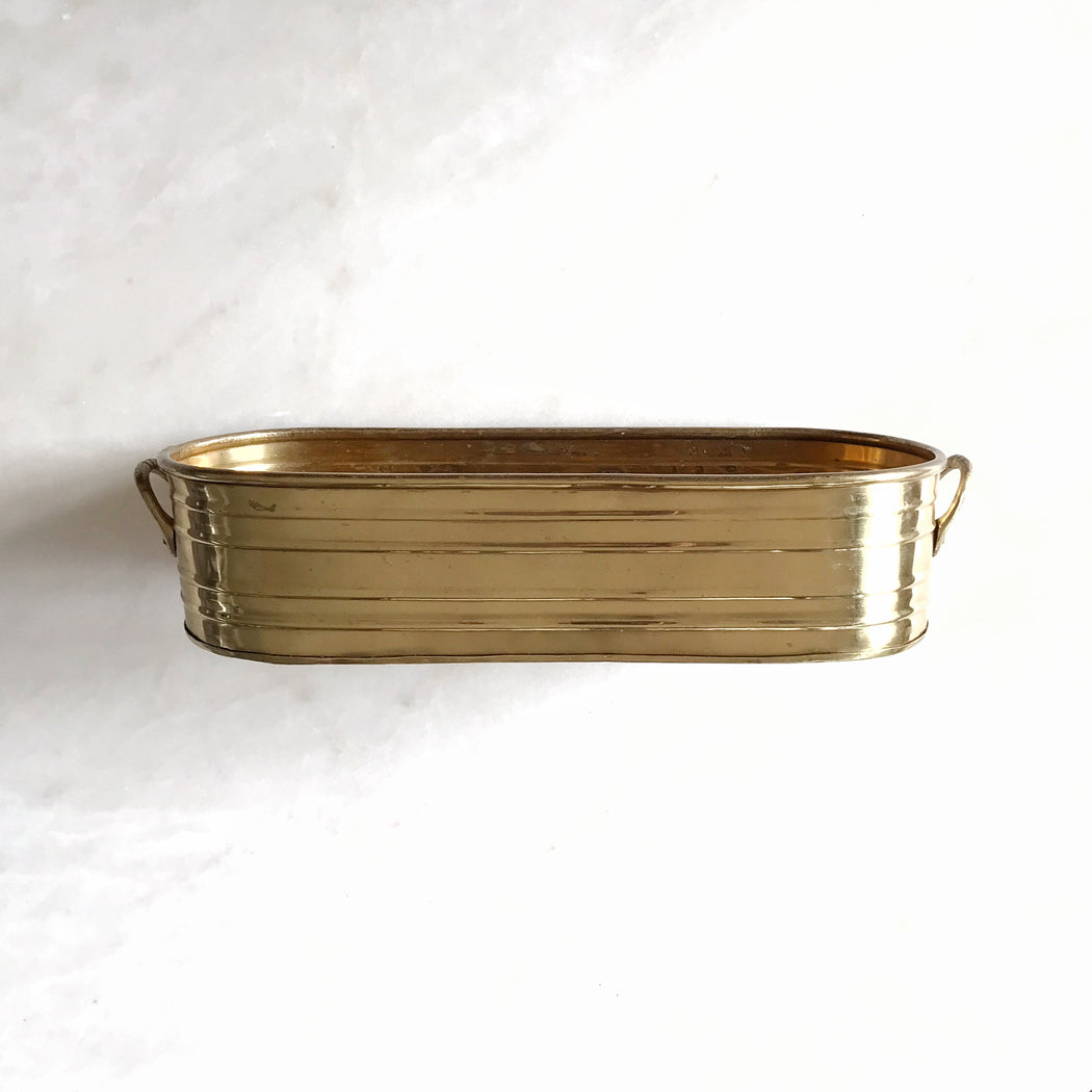 Long Vintage Brass Planter with Handles