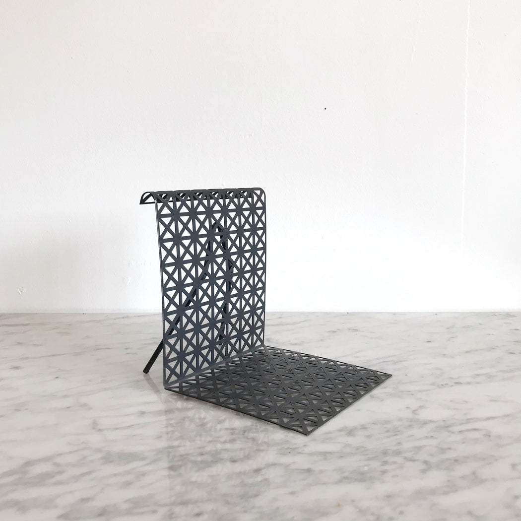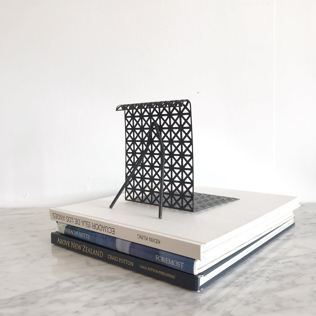 Vintage MCM atomic ranch style bookend. Black metal wire and mesh design.