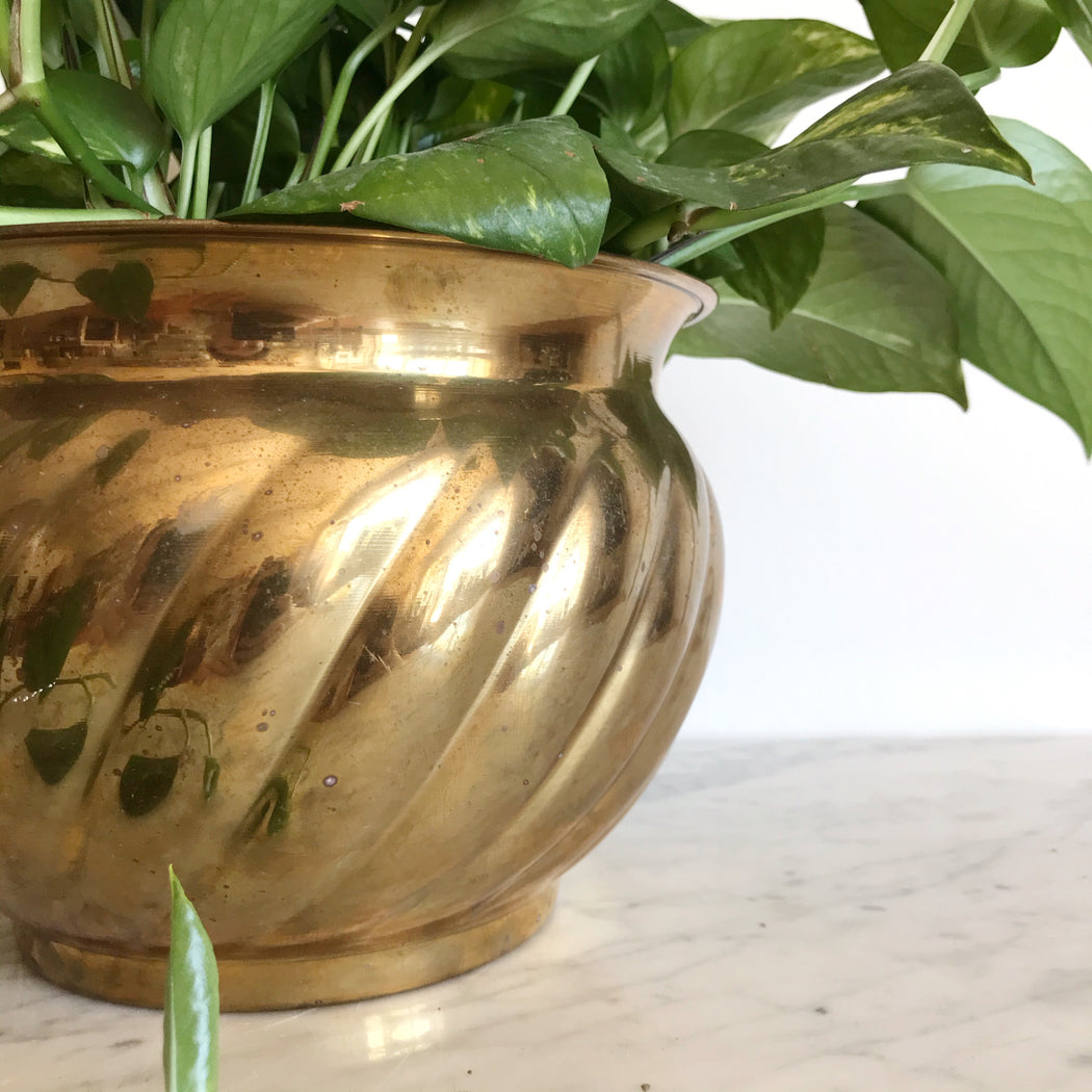 Gorgeous vintage brass planter with swirl pattern! A great way to add warmth and texture to your home!