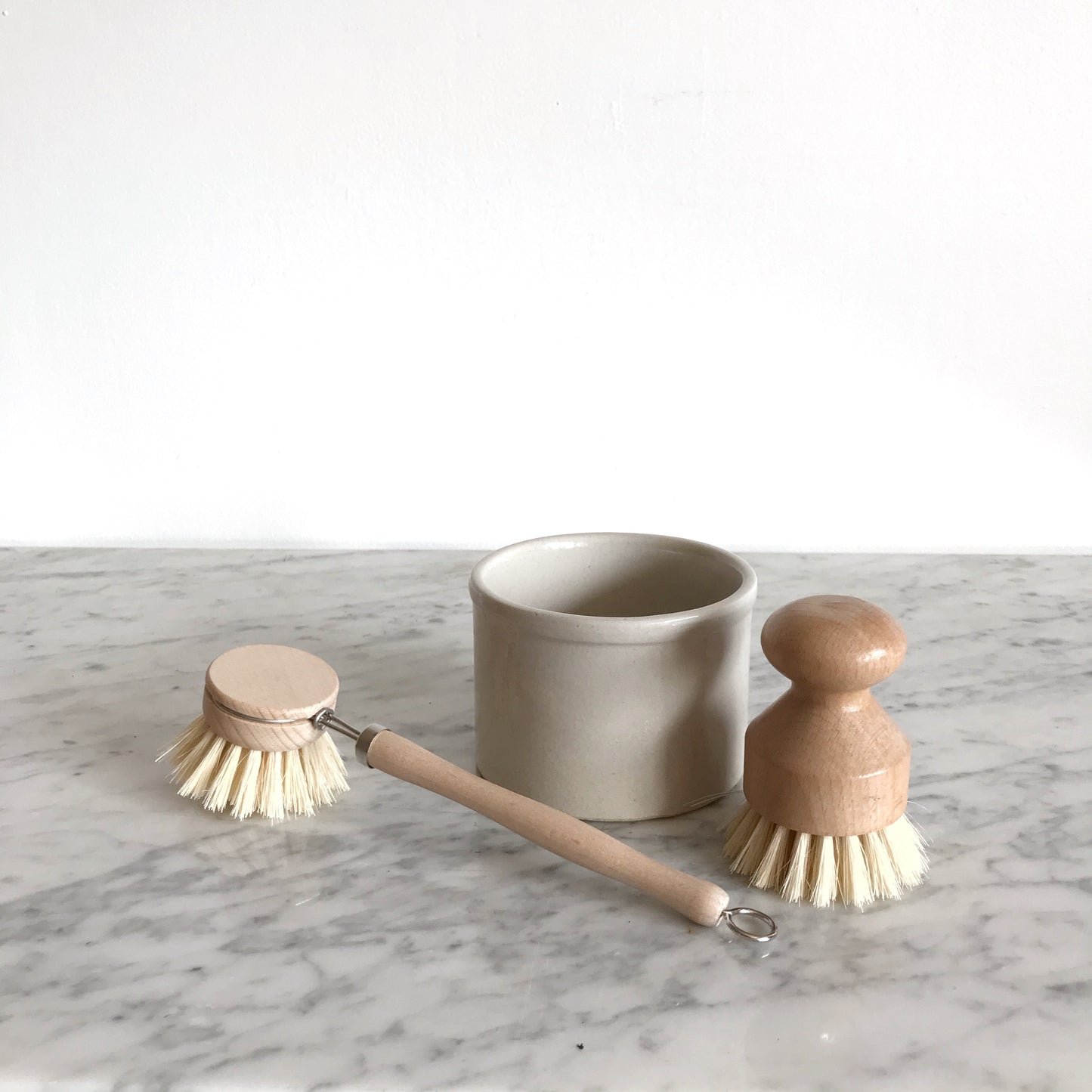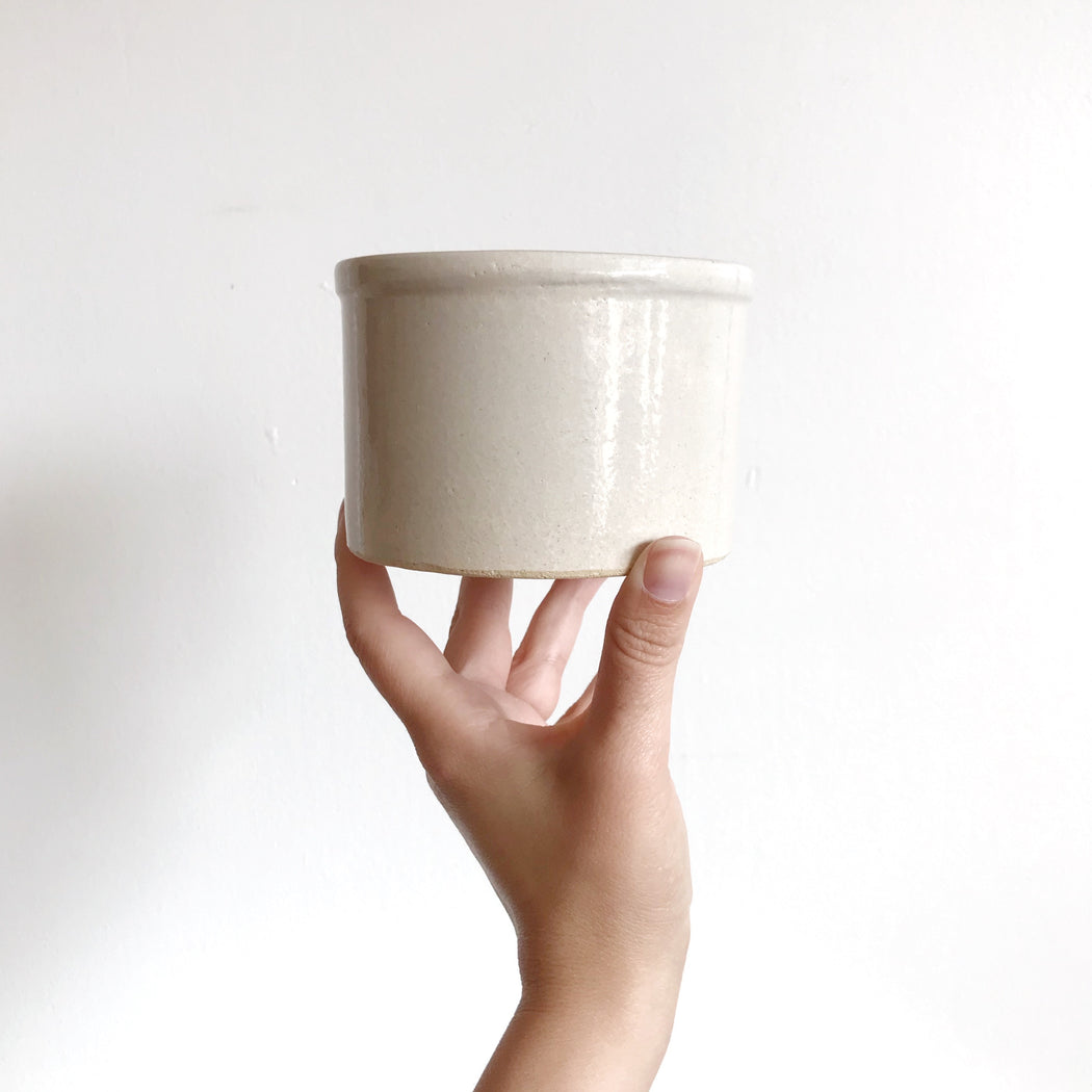 This pretty Robinson Ransbottom vintage stoneware crock is great for a multitude of uses: kitchen crock, candle holder, planter, or catch all to empty your pockets in. Beautiful natural pottery tone with clear glaze.