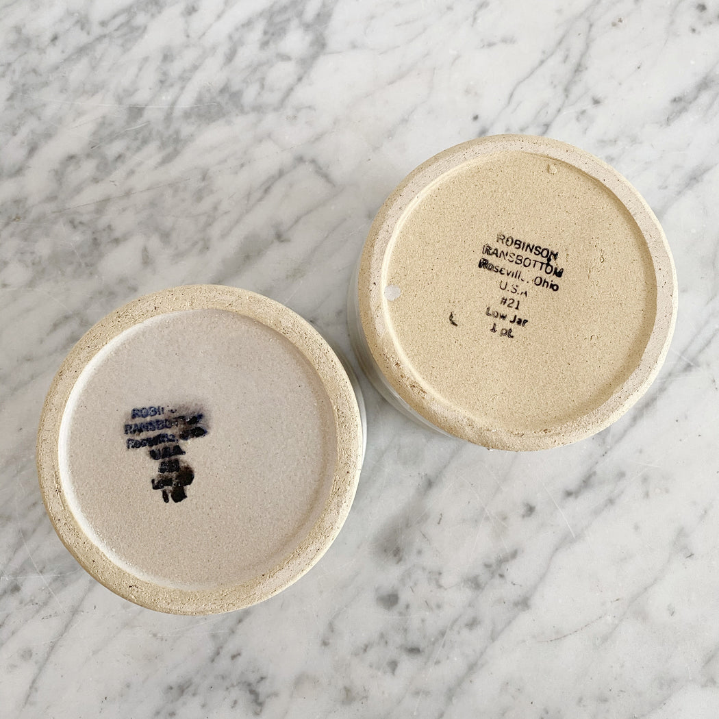 Marked on the bottom: ROBINSON RANSBOTTOM ROSEVILLE, OHIO, U.S.A. #21, Low Jar, 1pt.