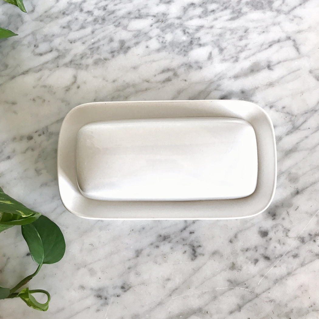 Covered White Ceramic Butter Dish