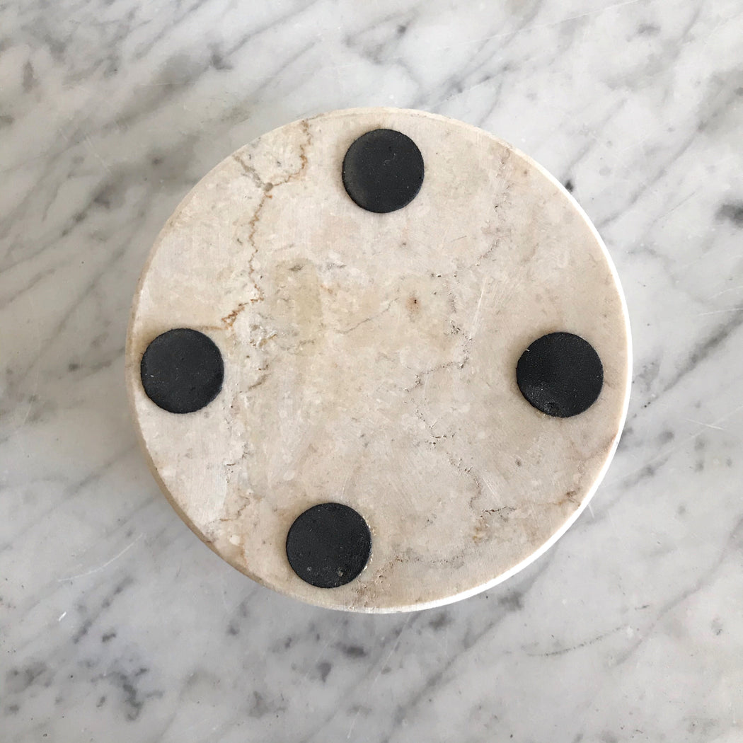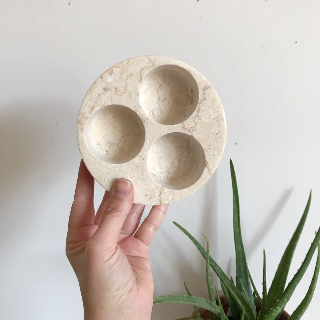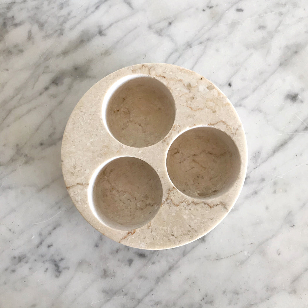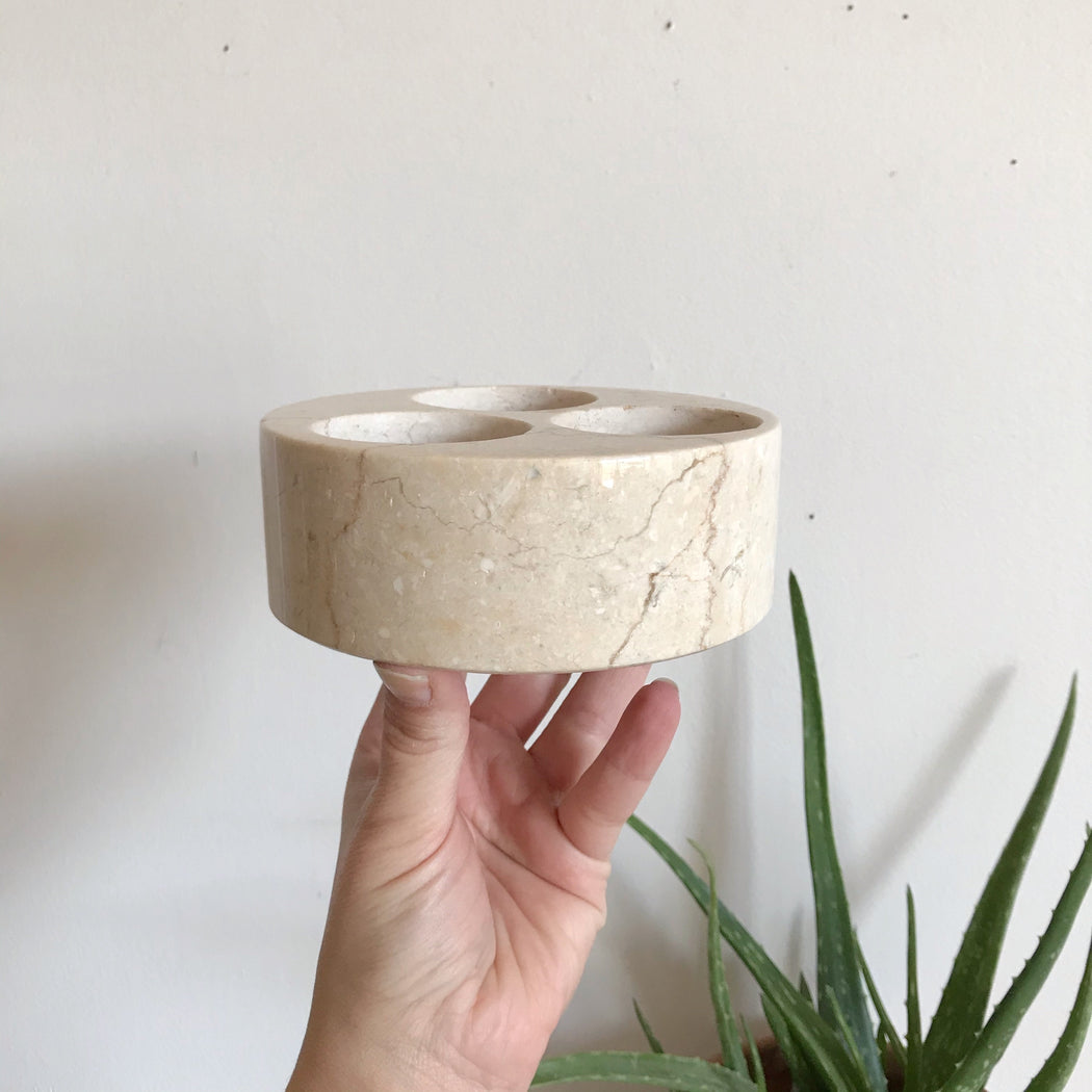 Soft minimalist vintage travertine candle holder for a trio of your favorite votives or tea light candles!