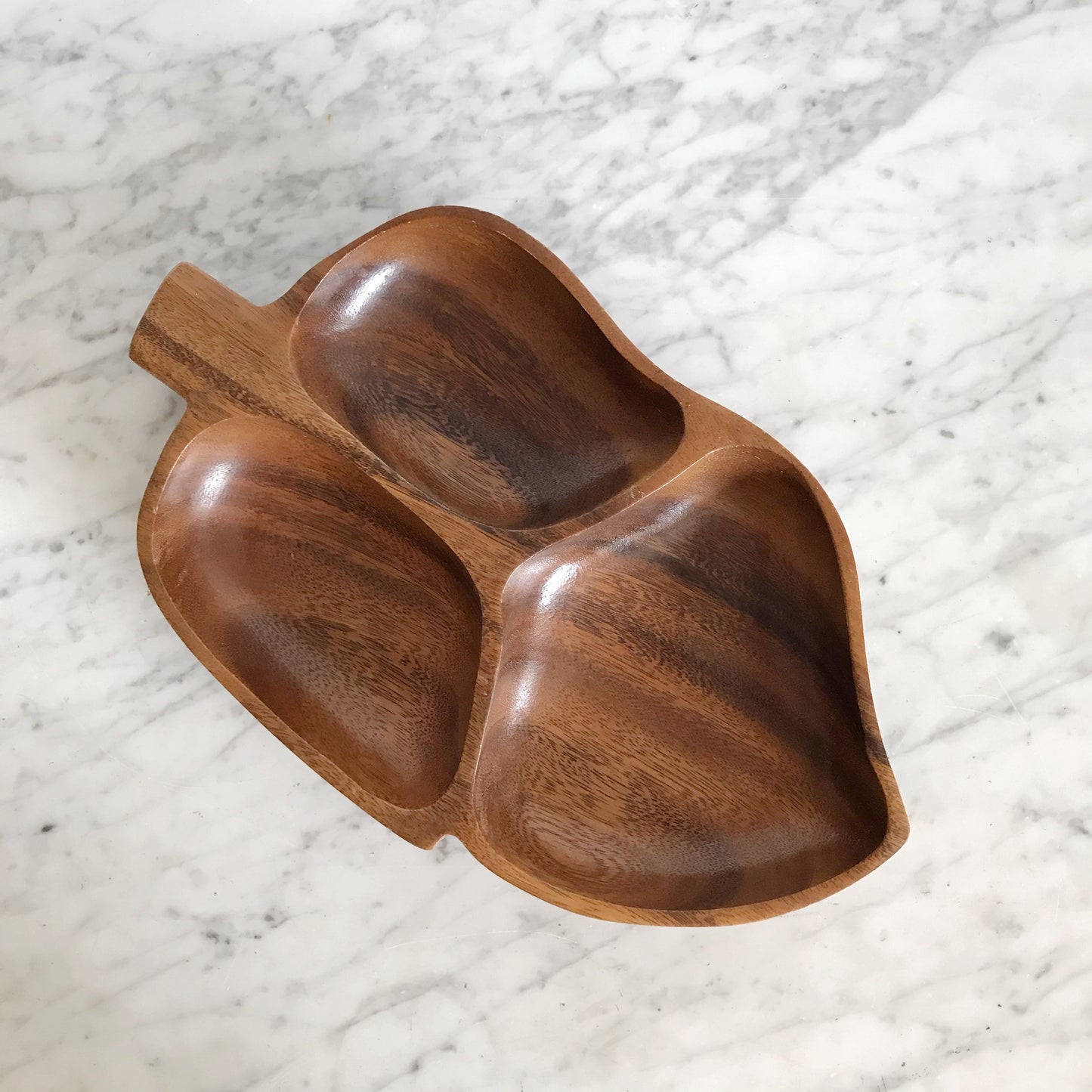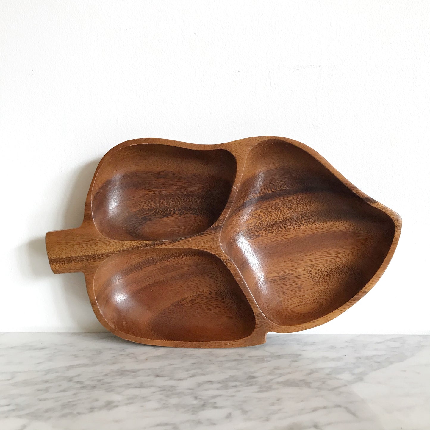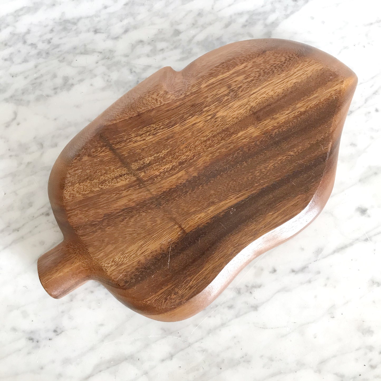 Vintage wooden serving piece in a lovely leaf shape! Use it to serve snacks or to organize collections of all kinds!