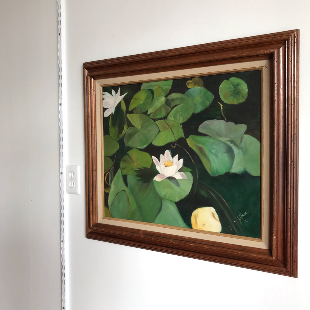 Large Original Vintage Painting, Water Lilies (37 x 27)