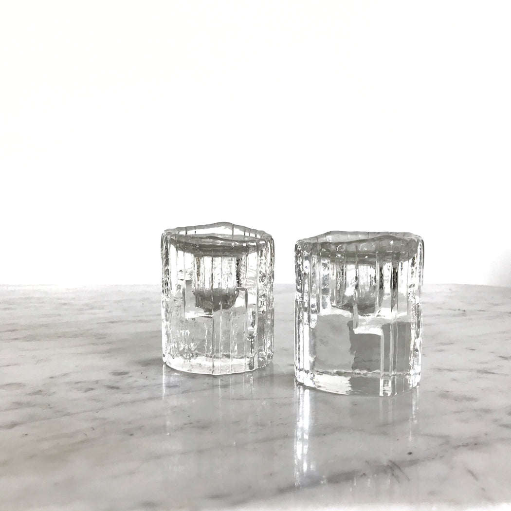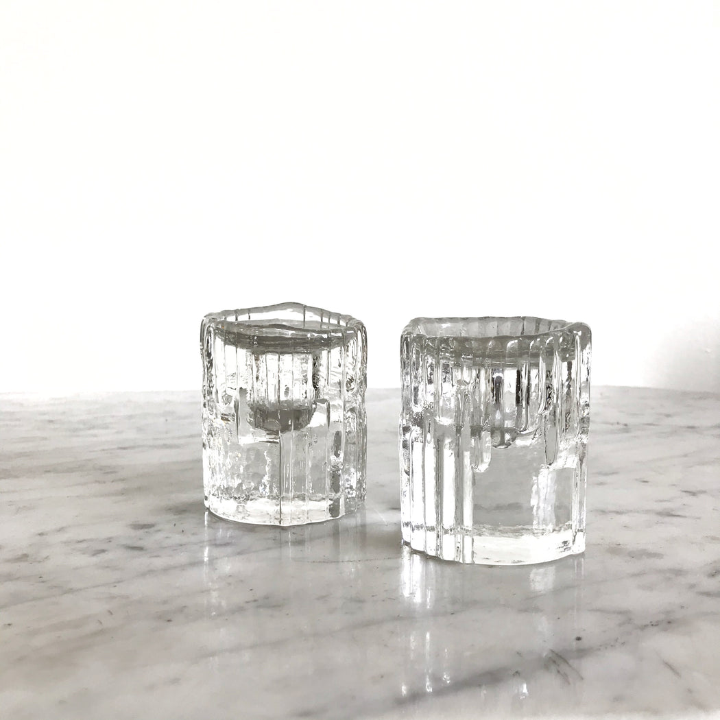 Pair of Glass Candle Holders, HUMPPILA Finland