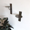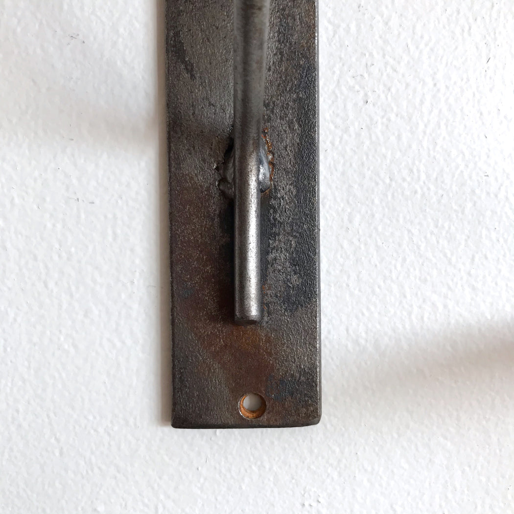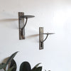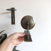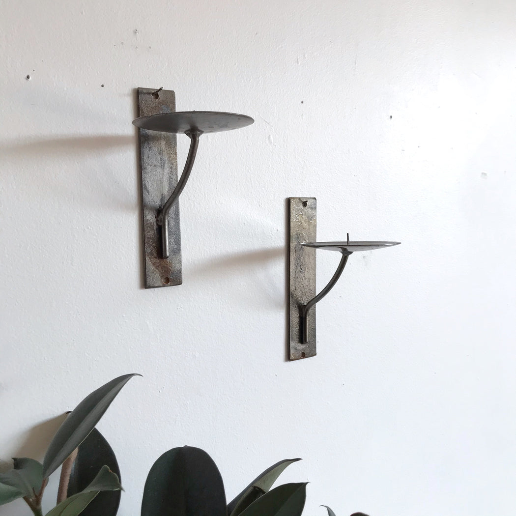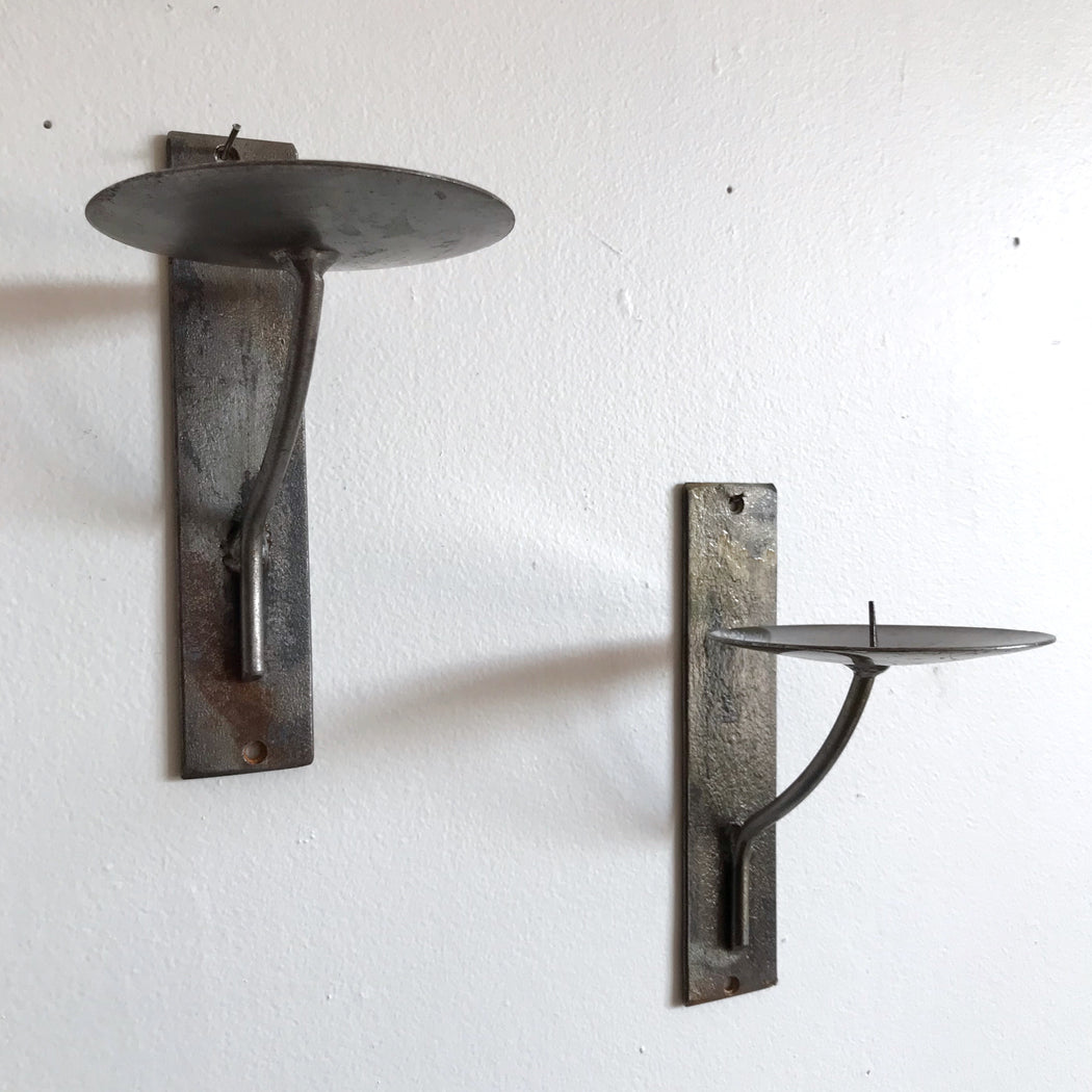 Pair of minimal, yet industrial, vintage metal pillar candle sconces. Made in Mexico.