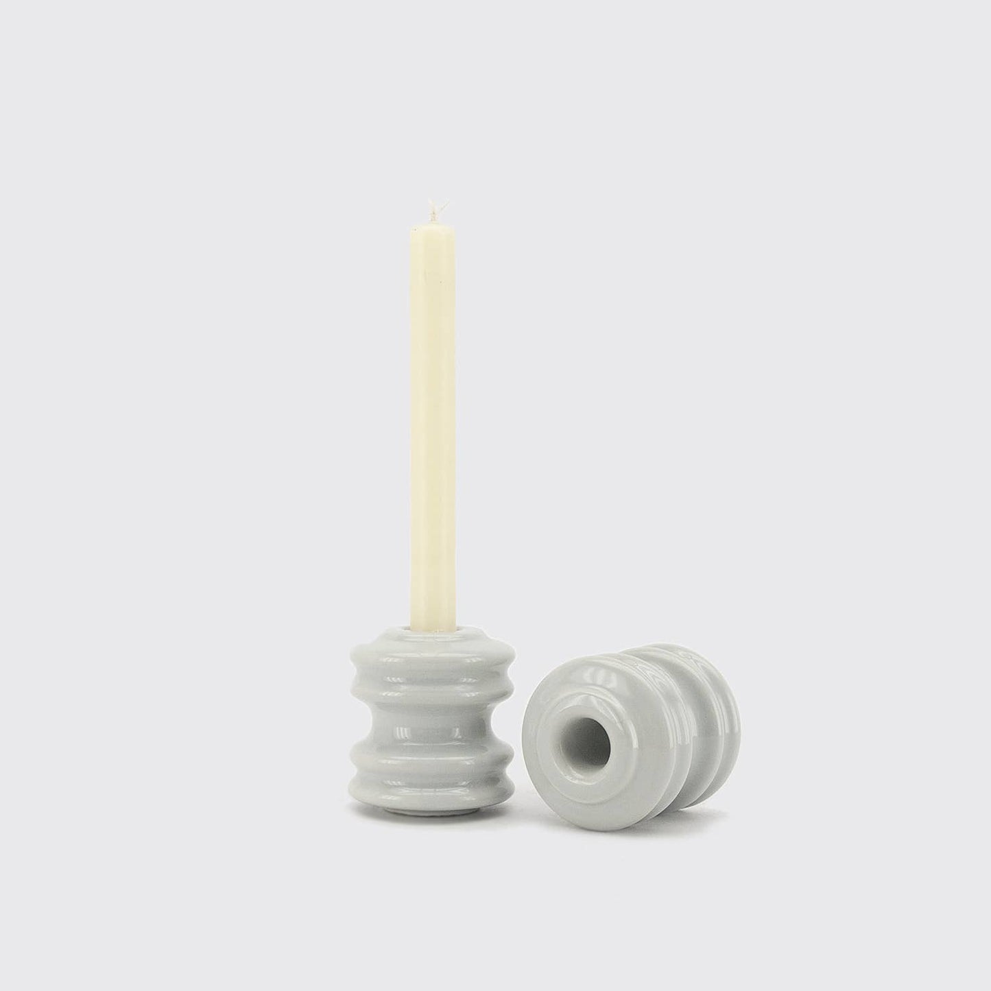 This heavy porcelain candle holder has a beautiful versatile style, and looks great as a sculptural element when not in use as a candle holder or dry-stem vase!