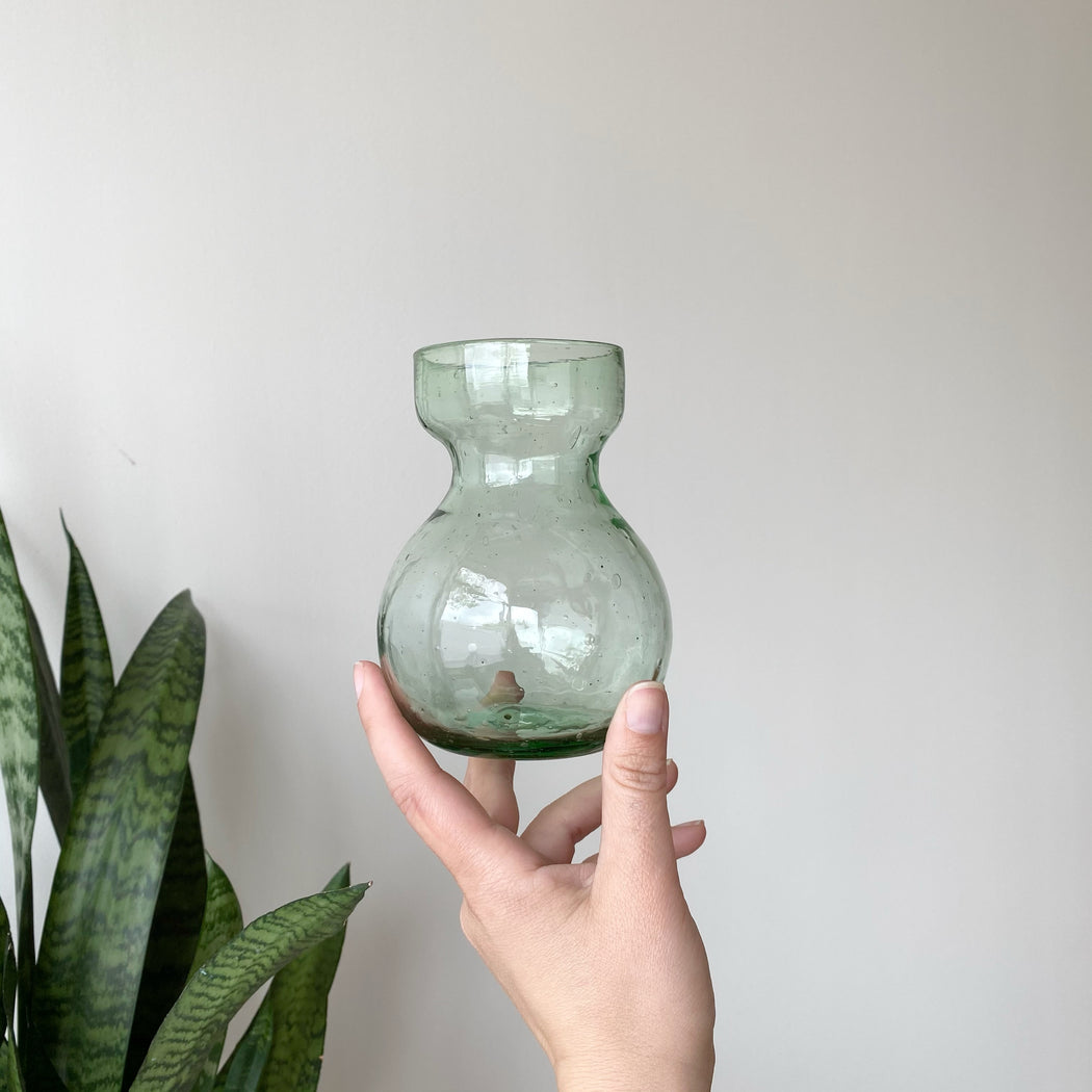 Simply beautiful, this recycled glass vase is beautifully blown into a lovely shape, and ready for a collection of your favorite blossoms!