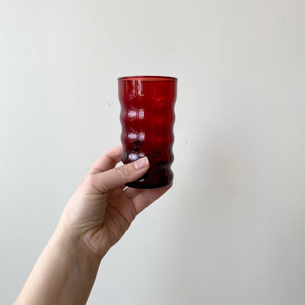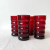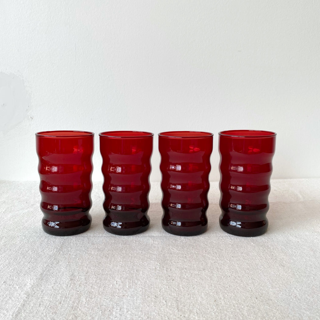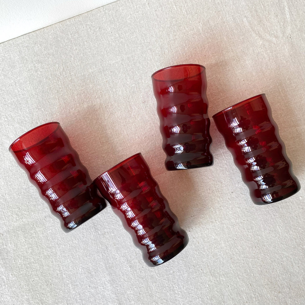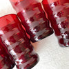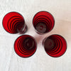 A set of four red glasses with “bubble” design… they’re a great balance between playful and sophisticated, and sure to be a new favorite!