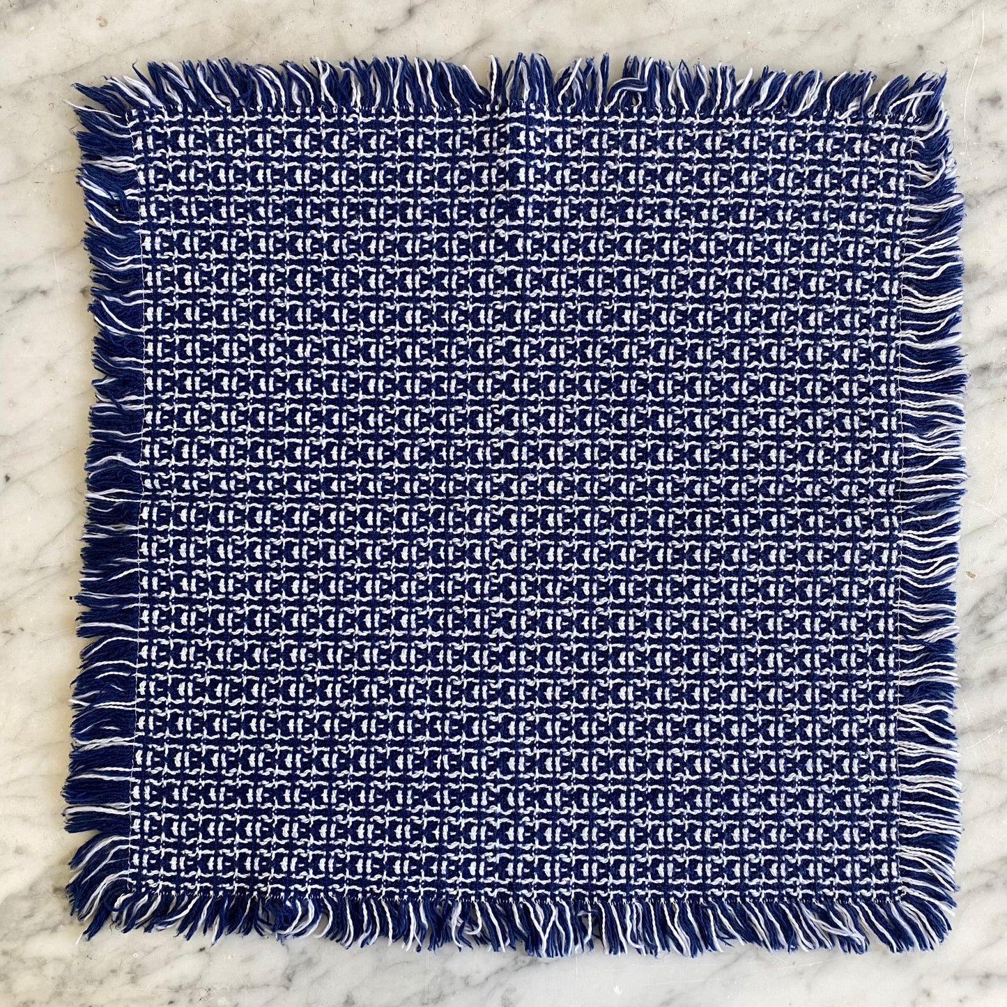 Set of 4 (+bonus!) Vintage Woven Blue + White Napkins / Placemats