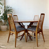 Condition: These are in found condition, as-is. Wear to the frames and finish. Two seat bases have the beginning of a split in the wood, could be reinforced.