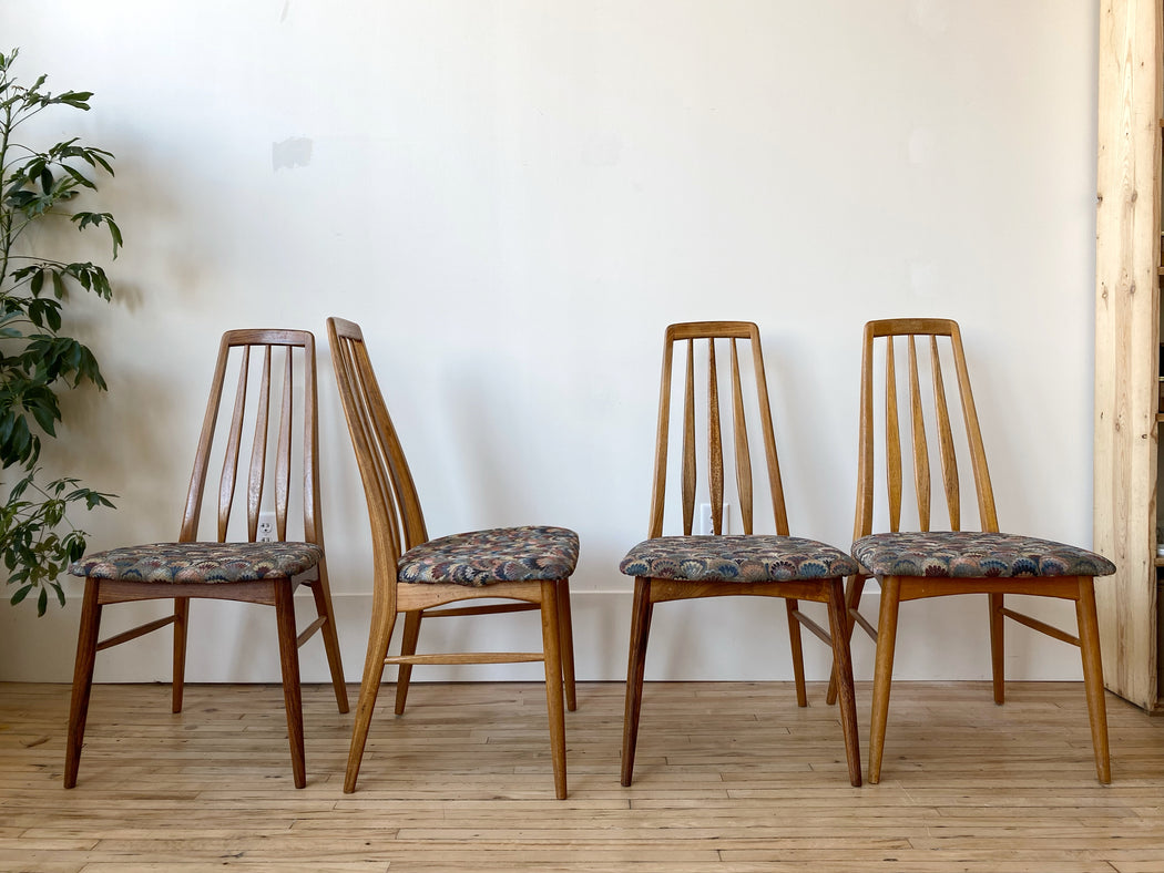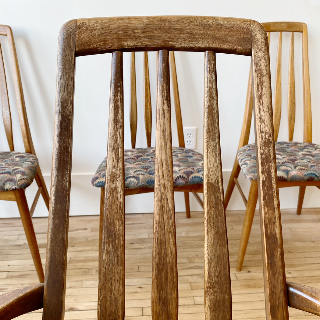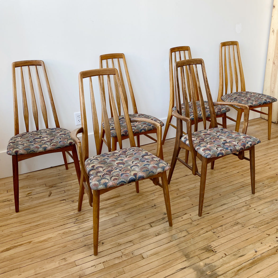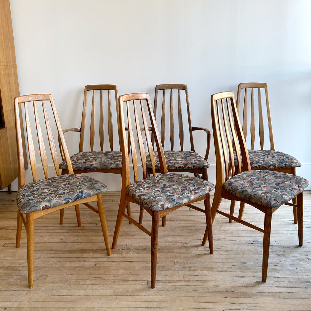 Set of 6 vintage Danish "Eva" dining chairs, designed by Niels Koefoed for Hornslet Mobelfabrik.