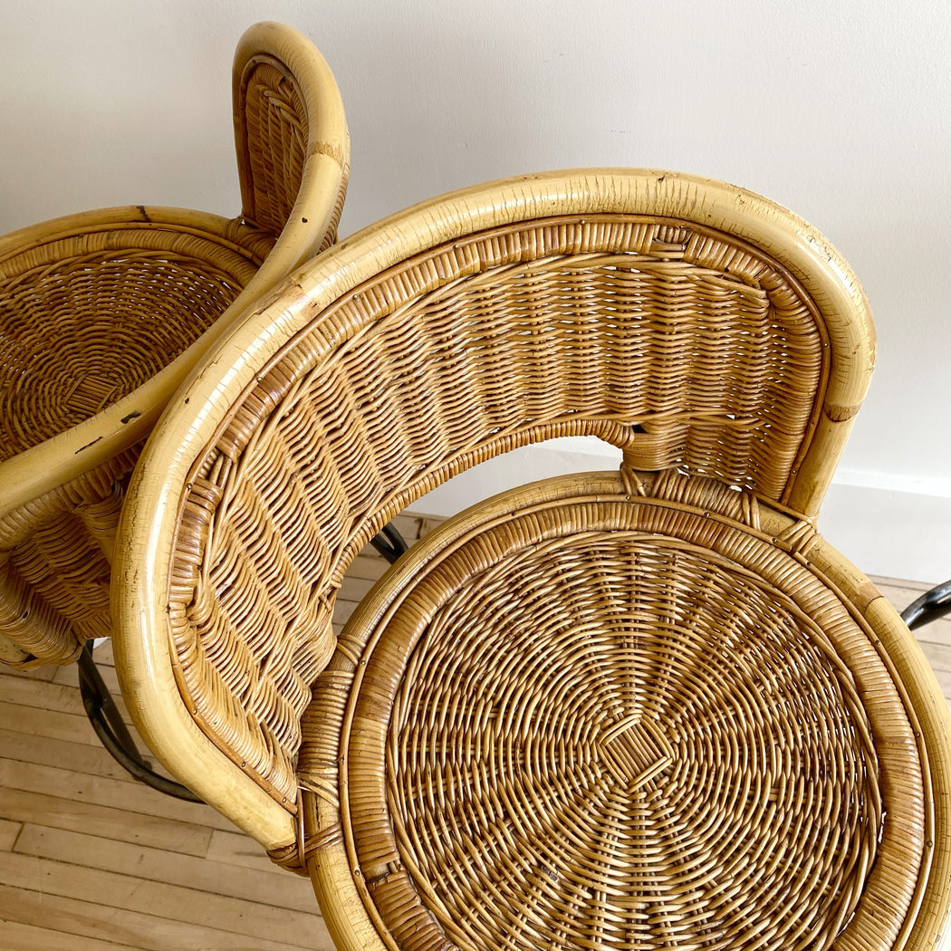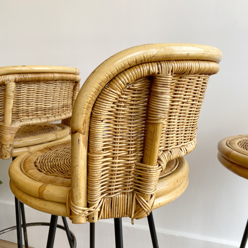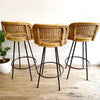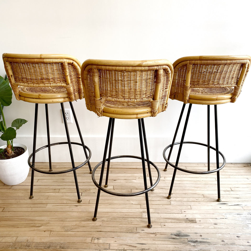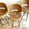 Set of 3 Vintage Mid-Century Wicker Barstools